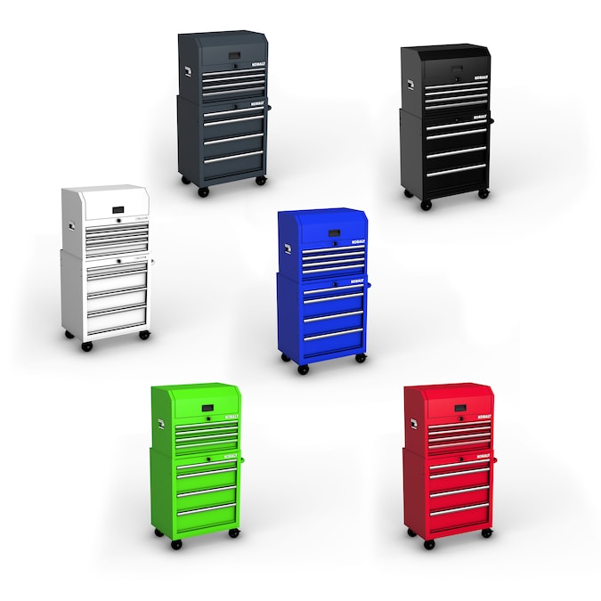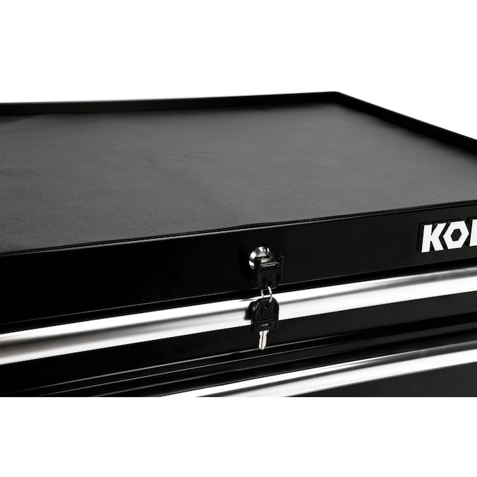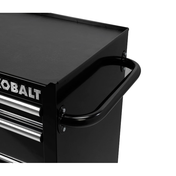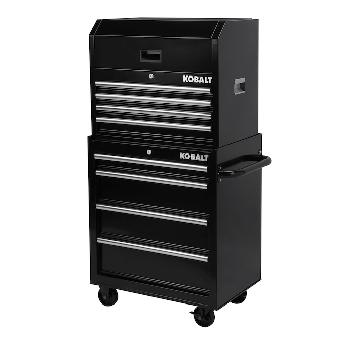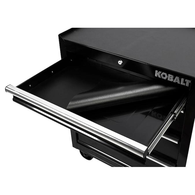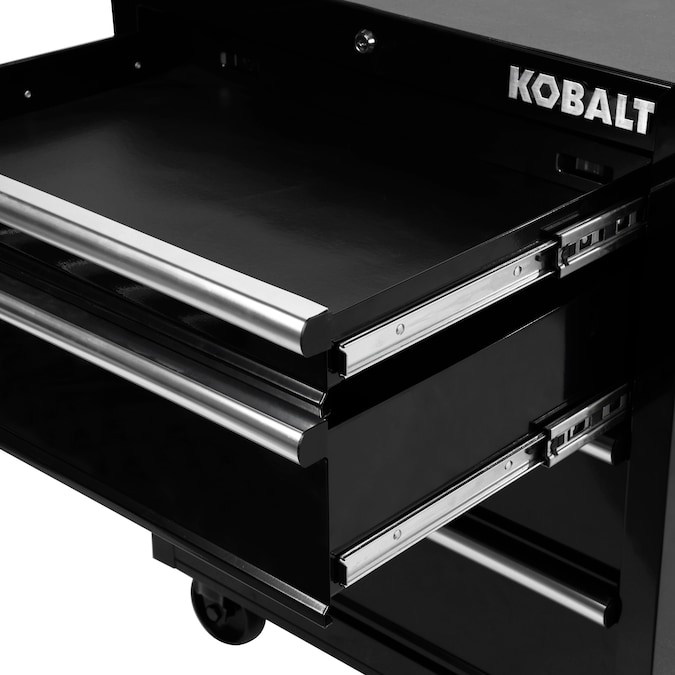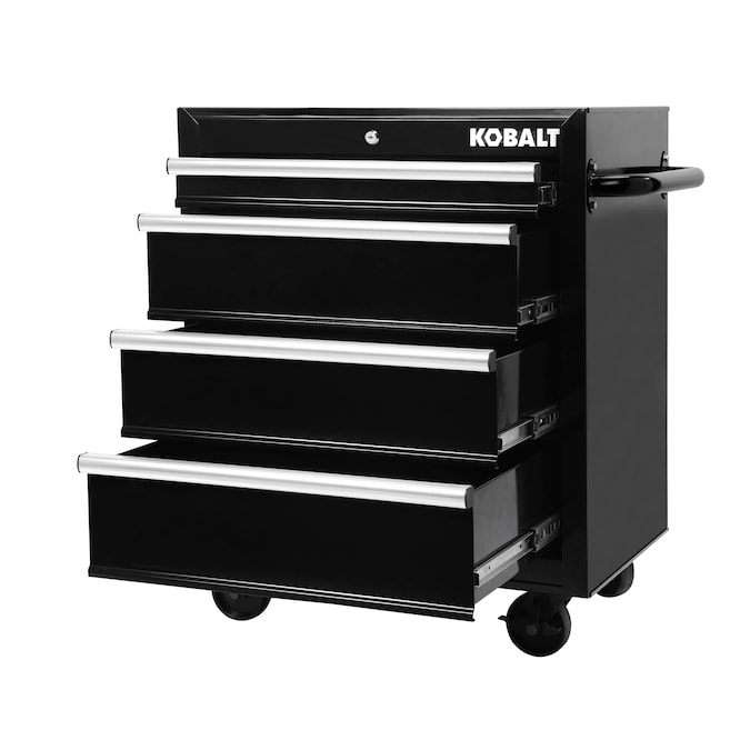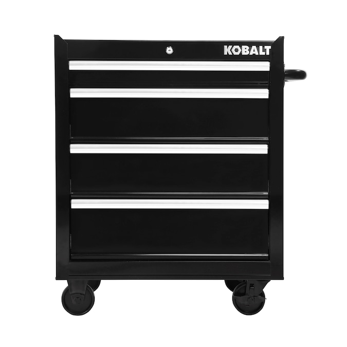 The Kobalt 26-In 4-Drawer Black Cabinet is great for storing and organizing all your tools and hardware. The unit is made from high grade all welded steel construction with a tough, rust-resistant powder coat finish. 4 Drawers are all full-extension and glide effortlessly on ball-bearing slides that can support up to 50 lbs. An ergonomic handle and 4 in. x 1.25 in. casters allow you to easily move your cabinet around your workspace. Total weight capacity of the unit is 600lbs. The cabinet has lock system for added security. Pair this cabinet with the Kobalt 26-In 4-Drawer Black Chest (item: 5071908, sold separately) to create the ultimate tool storage solution.