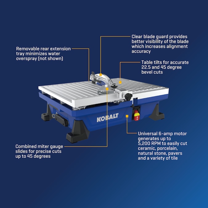 - Universal 6-amp motor generates up to 5,200-RPM to easily cut ceramic, porcelain, natural stone, pavers and a variety of tile
