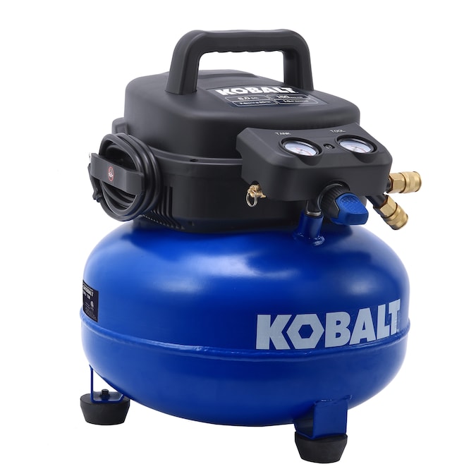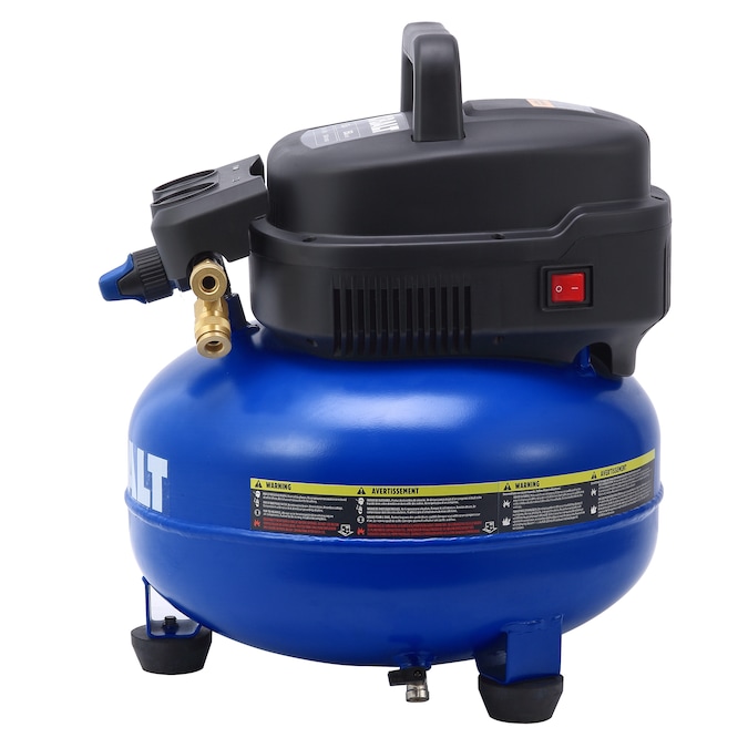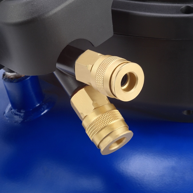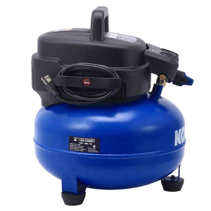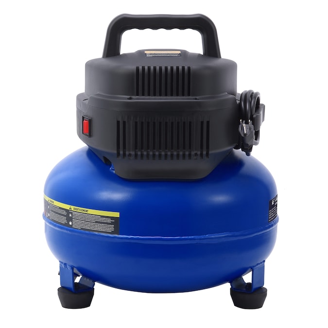 This air compressor is equipped with a pancake-style tank, 1.0 HP maintenance-free universal motor, 2.6 CFM at 90 PSI air delivery, 150 max. PSI working pressure, two durable quick couplers, and an easy-to-operate drain valve. It can be easily operated with an extension cord, no need to worry about low-voltage start issue. It is perfect for trimming and finishing jobs. It also features a strong handle and light weight design, you can easily carry it everywhere to get the job done.
