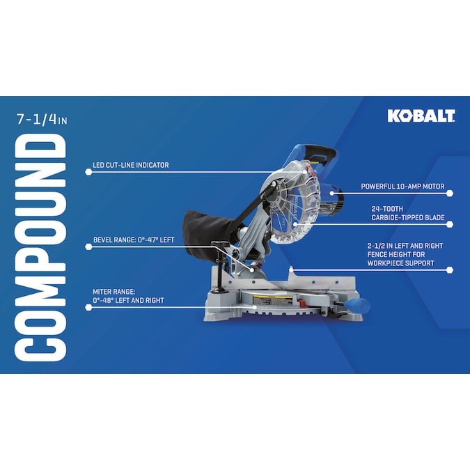 - Cuts up to 2-in by 4-in (dimensional) lumber at 90 degrees, 2-in x 3-in at 45 degrees left and right