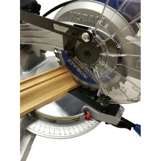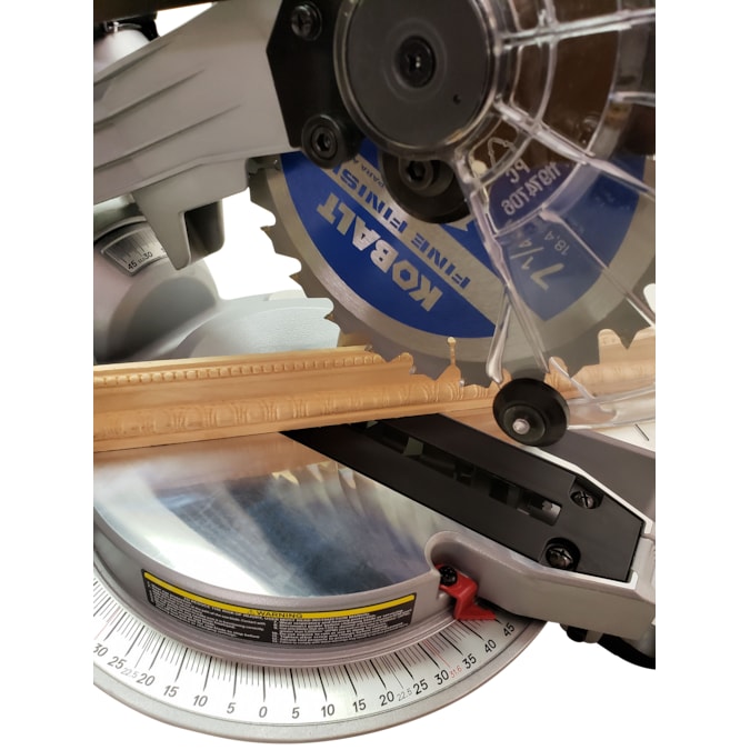 - Miter angle positive stops at most common angles; 0, 15, 22.5, 31.6, 45 degrees left and right