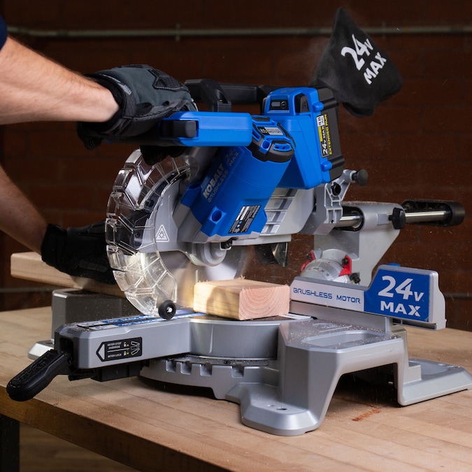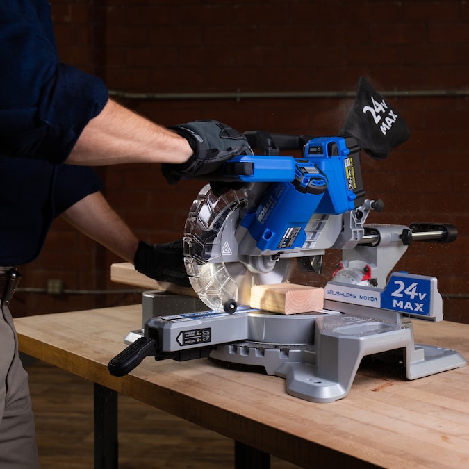 Kobalt’s powerful 24-volt brushless motor provides longer life, more power and extended run time. Sliding design allows you to cross-cut most standard lumber. The aluminum table makes the tool lighter weight for easy transport. For max performance, it is recommended that a Kobalt 24-volt max 6.0 Ah Li-ion battery is used with this tool. The batteries and charger are sold separately.