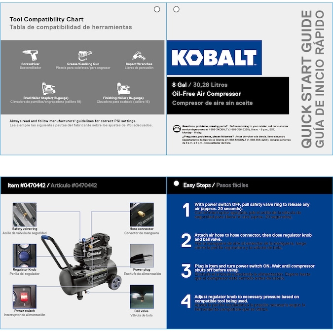 - Kobalt 8-gal, 150-PSI portable electric air compressor is perfect for use with a variety of air tools