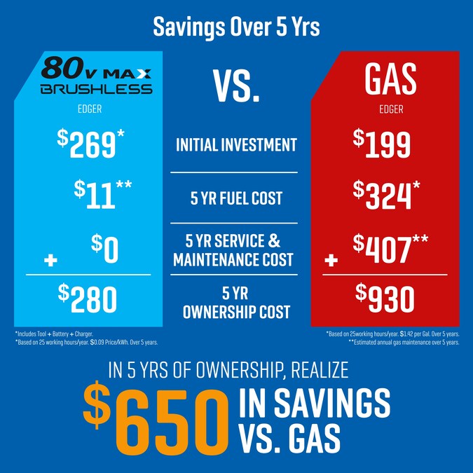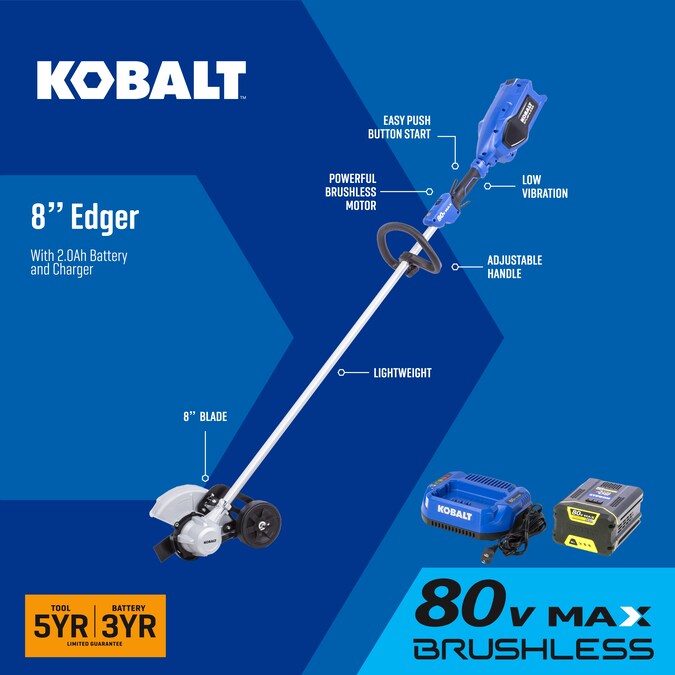 - Package Contents: Edger, Auxiliary Handle, Wrench, 2 Ah Battery, Charger