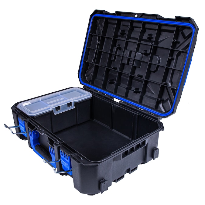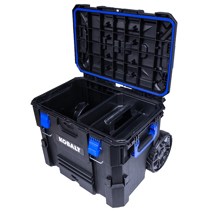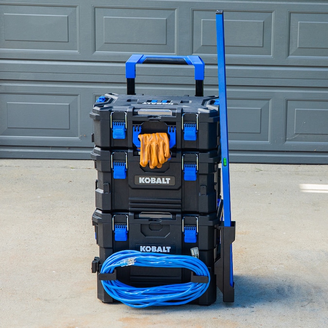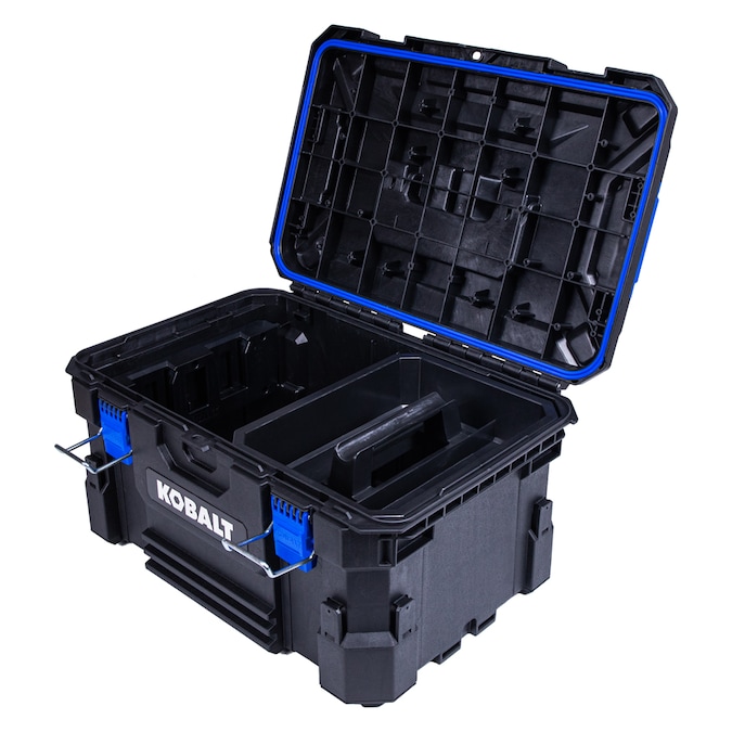 Introducing the KOBALT modular storage system constructed with impact-resistant polymers to handle any environment. The KOBALT 3-pc modular storage system includes a suitcase, medium toolbox and rolling unit. The Kobalt 3-pc system holds up to 248 lbs. of gear and includes removable trays and bins to keep all your equipment organized. The boxes securely connect to each other via quick connect sliding locks and offer heavy-duty steel latches. The rolling case is compatible with the full line of Kobalt modular storage boxes and accessories.