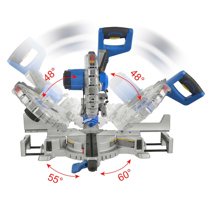 - Miter cuts up to 55 degrees left and 60 degrees right with 10 positive stops are most used angles