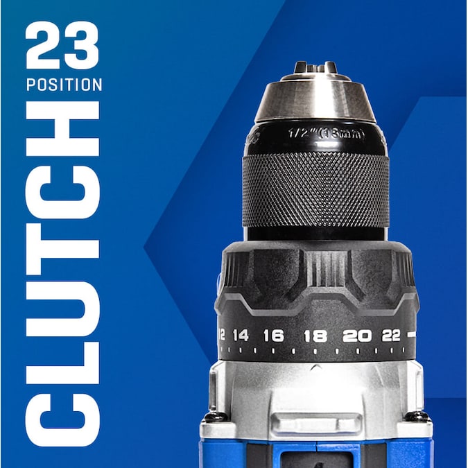 This new generation Kobalt drill driver uses the most innovative electronics and motor technology to deliver up to 850 in-lb of torque and the performance to tackle any job. The new compact size allows the user to fit the tool into tighter spaces. The compact size offers a lightweight tool which maximizes productivity and reduces user fatigue on long workdays. The newly designed grip with soft overmold provides superior comfort along with improved balance makes this tool the go-to for every job. The Kobalt drill driver is equipped with a 2-speed mechanical gear box; Speed 1 provides 550 RPM, while speed 2 provides 2000 RPM. The metal gear case and nylon plastic handle maximizes durability. A bright LED is located on the foot of the tool to provide lighting on the workpiece. The Kobalt drill driver includes a premium Jacobs brand metal 1/2-in ratcheting chuck for increased durability. A 2-position bit holder and metal belt clip is included with mounting positions on both sides of the tool. A metal auxiliary handle with comfortable grip is included for increased safety in bit binding conditions. The included soft bag is provided for added convenience of storing and transporting.