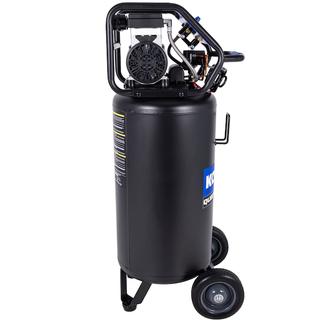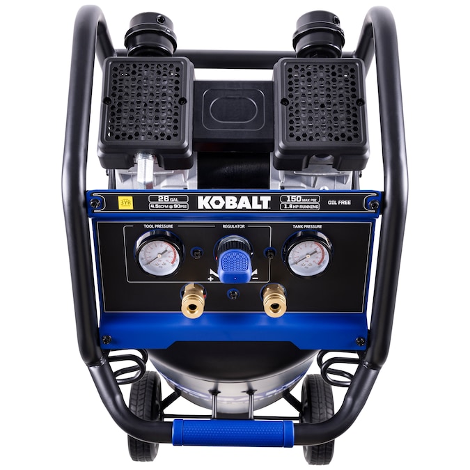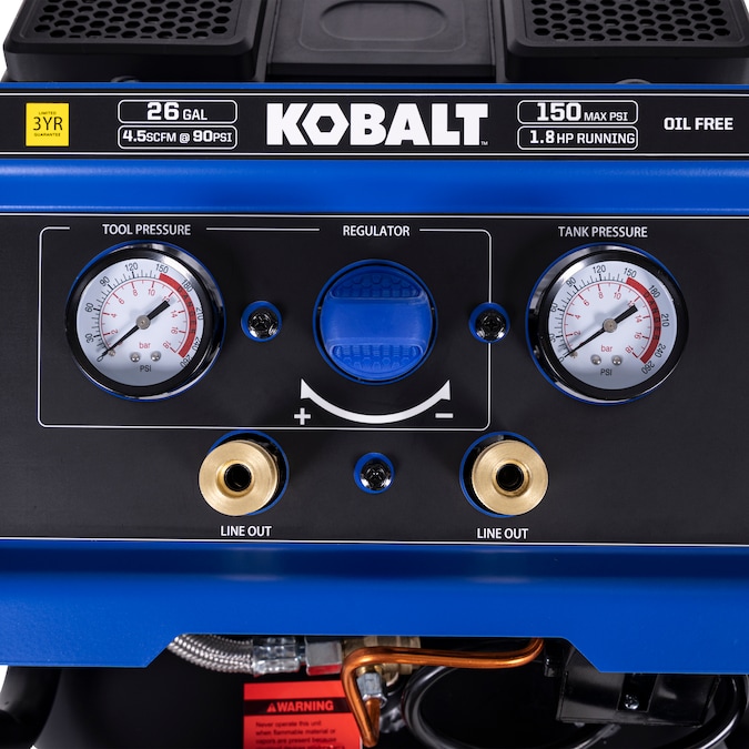 This 26 gal air compressor equipped with 1.8 HP 4-pole induction motor and dual oil less pumps provides high air flow of 4.5 CFM at 90 PSI with 150 max psi, much quieter operation and at least two times longer than standard compressor, perfect for garage, jobsite works with capable of driving all kinds of nail guns, impact wrench, ratchet, spray gun, surface preparation tools etc.