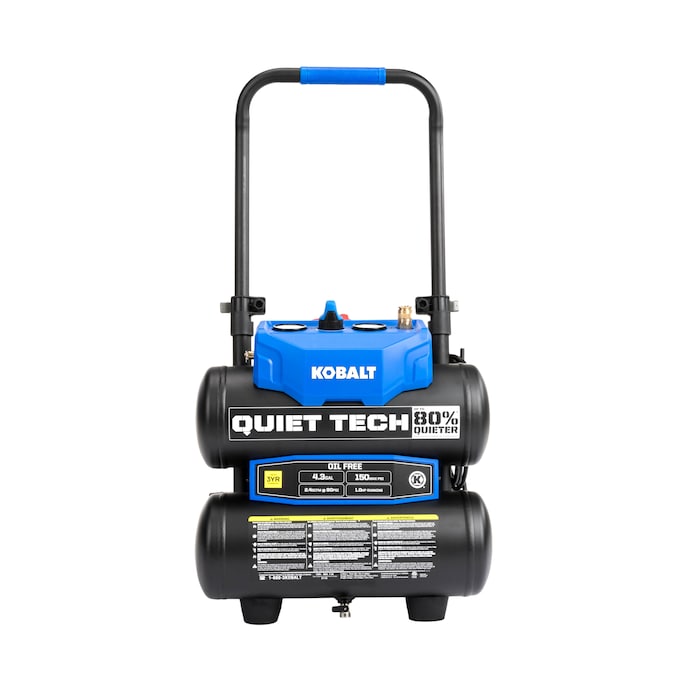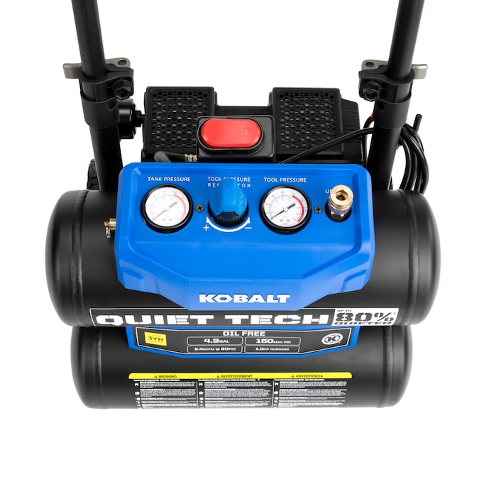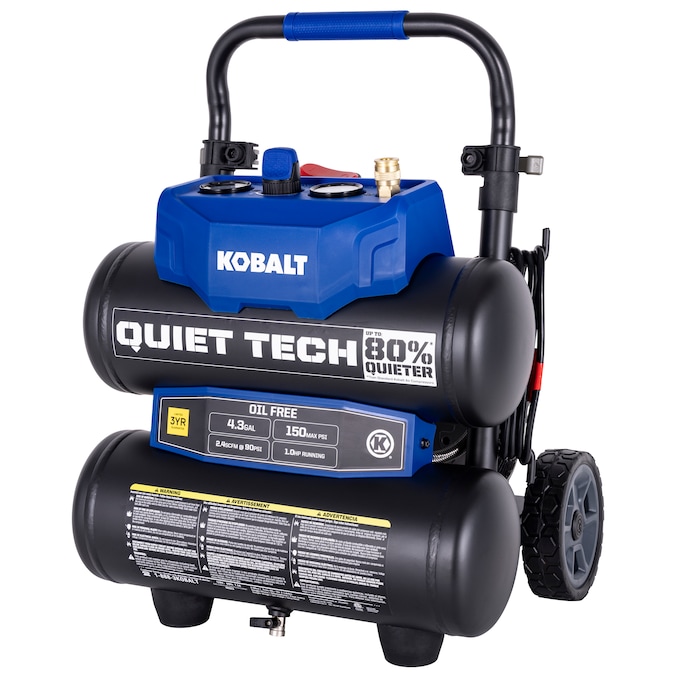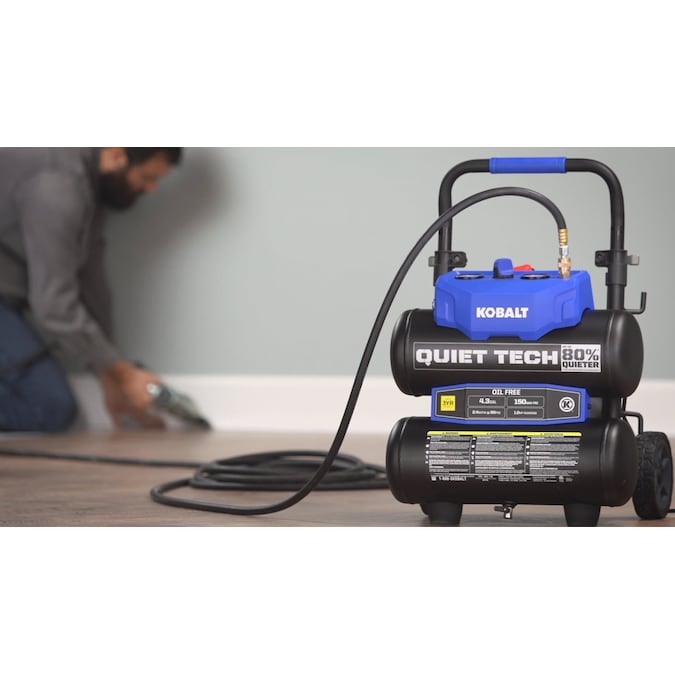 - Kobalt 4.3-gal, 150-PSI portable electric air compressor is ideal for use with brad/staple nailers, finish nailers and framing nailers