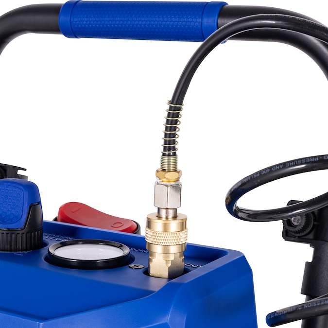 - Integrated control panel features a regulator and one-hand push quick-coupler for easy operation