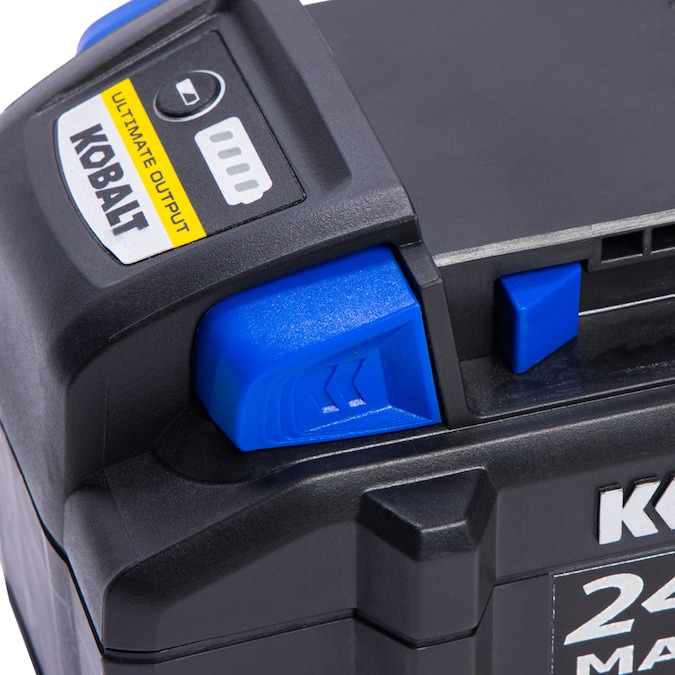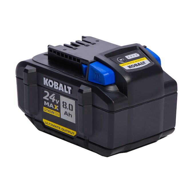 KOBALT 24-Volt Max Ultimate Output Battery. The Ultimate Output lithium ion battery utilizes cutting edge technology for high energy 24-volt power tools, like KOBALT XTR tools. The power Indicator display allows immediate feedback on charge status. While internal technology protects the battery pack from extreme temperatures. Compatible with the entire line of KOBALT 24V Max tools and includes a 3-year limited warranty.