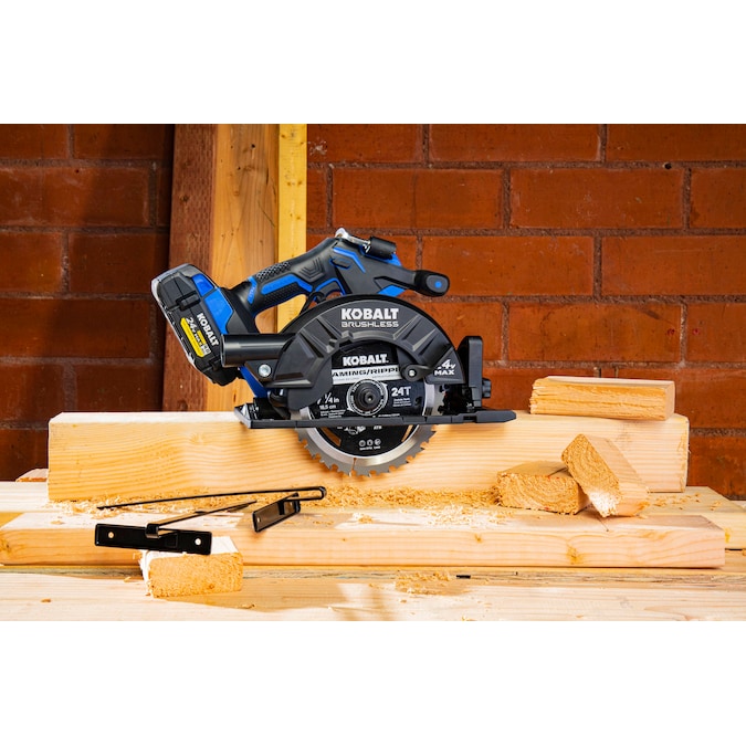 Introducing the most powerful line of KOBALT power tools – Kobalt 24V max XTR! The XTR circular saw is designed with a brushless motor that delivers up to 50% extra performance and power to meet your most demanding jobs. While the 2-1/2-inch cut and 56 degree bevel add versatility. XTR, elevating the Kobalt 24-volt max system to new heights.