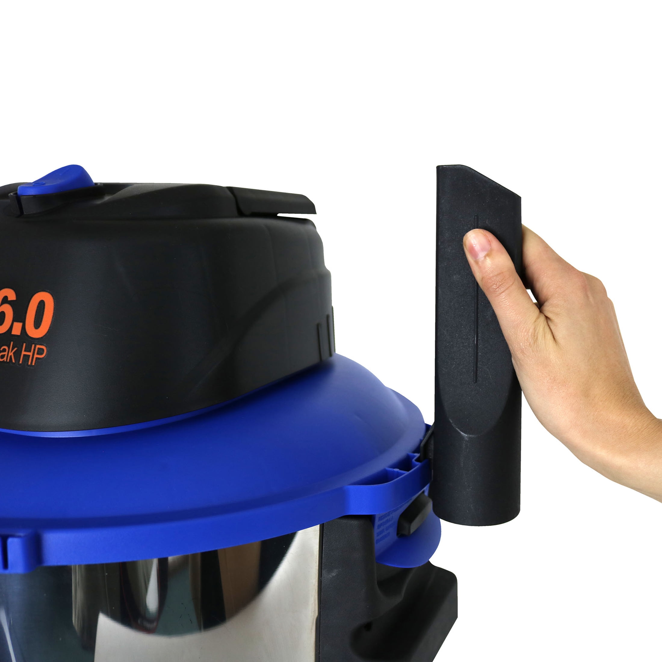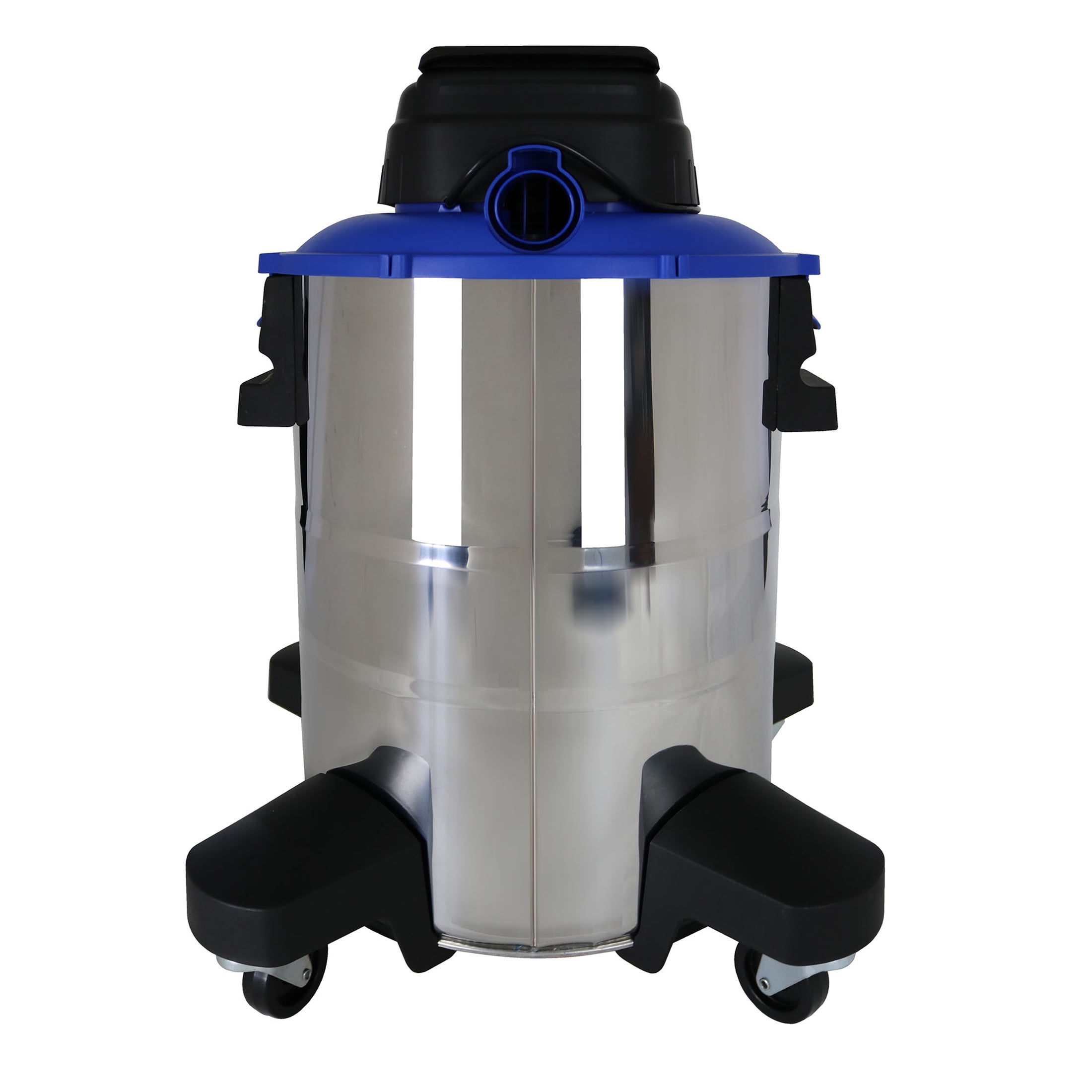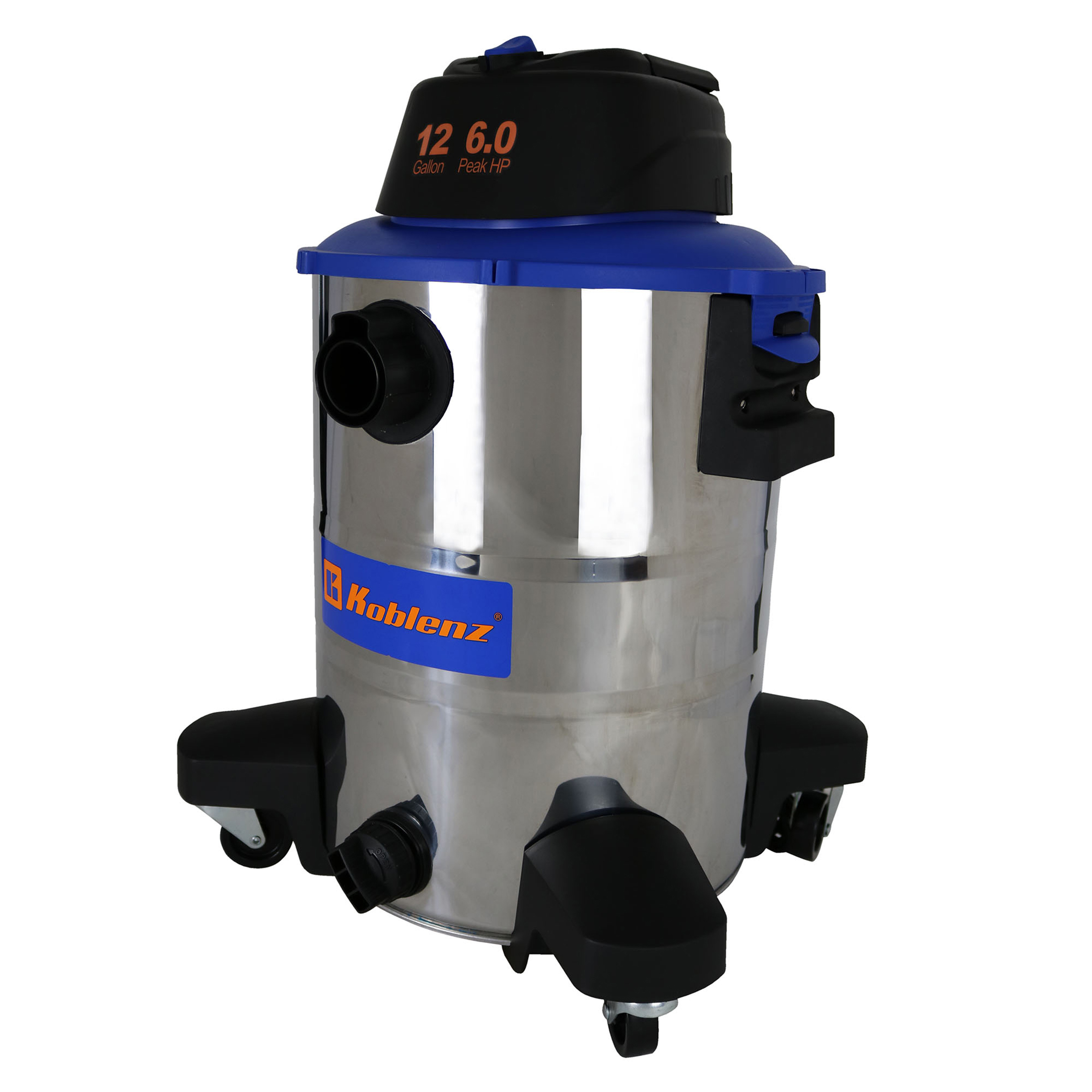 STRONG SUCTION POWER 6 Peak Horse Power Motor with 20 ft. power cord RUGGED AND ELEGANT TANK DESIGN 12 Gallon reinforced Stainless Steel supported by 4 bracket extensions and swivel casters. Liquid drain port included IDEAL FOR LARGER MESSES Around the home, garage, workshop, cars, trucks and vans THREE-IN-ONE CAPABILITY Shop vacuum sucks up dry, wet messes and easily converts into blower mode CLICK-N-LOCK HOSE CONNECTION Securely locks 1-7/8 in. x 7 ft. premium EVA hose into position FILTRATION Cartridge filter provides enhanced dust filtration and extends motor life HOOK-N-STORE ACCESSORIES INCLUDED Hook any accessory around the entire tank parameter, 2-Hose storage clips, 2-Extension Wands, Crevice Tool, Utility Nozzle, Floor Nozzle WARRANTY 5-Year PURCHASE GUARANTEE – KOBLENZ is the industry leading GOLD INNOVATION AWARD recipient manufacturer located in North America, delivering priority shipment service from our US warehouse while providing professional customer service satisfaction for over 60 years.