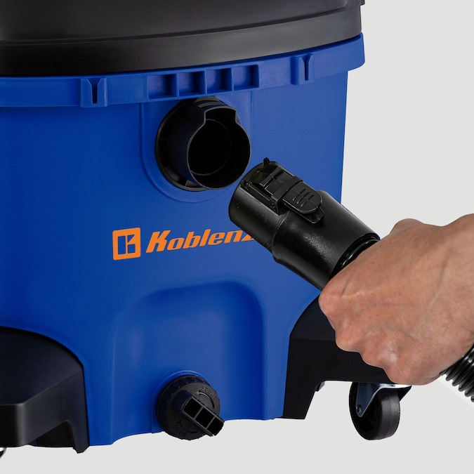 Searching for a vacuum that’s powerful and versatile enough to perform around the home, garage, used to clean the automobiles or extract water from a flooded basement. With KOBLENZ 3-in-1 Wet-Dry-Blow vacuum cleaner unique patented features, rugged 12 Gallon polypropylene tank and powerful 5.5 Peak HP motor your problems are solved. The 2-1/2 inch diameter hose sucks up both wet and dry messes or just conveniently blows away the mess. Think about any wet or dry mess and this vacuum is your friend. Extended 32 feet of reach with power cord, hose and extension wands provide easy and convenient use to pick up dirt and liquid off the floor, on workshop bench, on the furniture, inside your truck or car and around the entire home. Plus, this vac comes with (2) long extension wands, crevice tool, pickup tool and floor nozzle. Desire to blow away dirt and debris off your workshop bench and tools instead of vacuum. No problem, just hook the vacuum hose to the blower port located on the rear side of the vacuum and quickly blow away the mess. Clean with confidence when using KOBLENZ CLICK-N-LOCK secure hose connection that prevents the hose from disconnecting during use. KOBLENZ HOOK-N-STORE accessories and hose clips are uniquely designed to provide easy-to-use and convenient storage around the entire parameter of the tank lid. Unique patented tank design is supported by four extended corner brackets and swivel casters. Liquid drain plug is located at the bottom of tank for quick and easy emptying. Cartridge filter is included to protect motor life. KOBLENZ Fine dust and Washable replacement cartridge filters are also available.