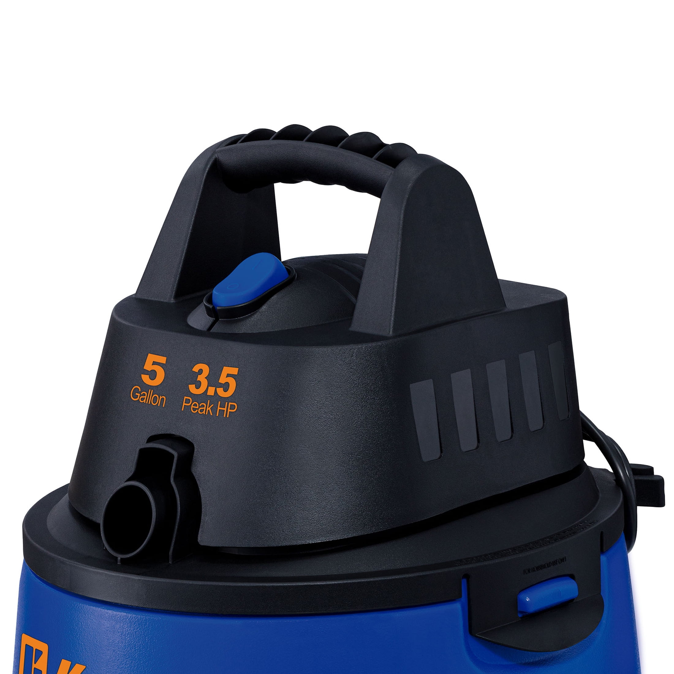 Strong suction power with 3.5 Peak horsepower motor and 10 Ft cord Rugged 5-gallon polypropylene tank with tip-over resistant base and swivel casters Perfect size and portability for around the home, garage, cars, trucks and vans 3-in1 Shop vacuum sucks up dry, wet messes and easily converts into a blower mode TWIST-N-LOCK hose connection ensures hose remains securely locked