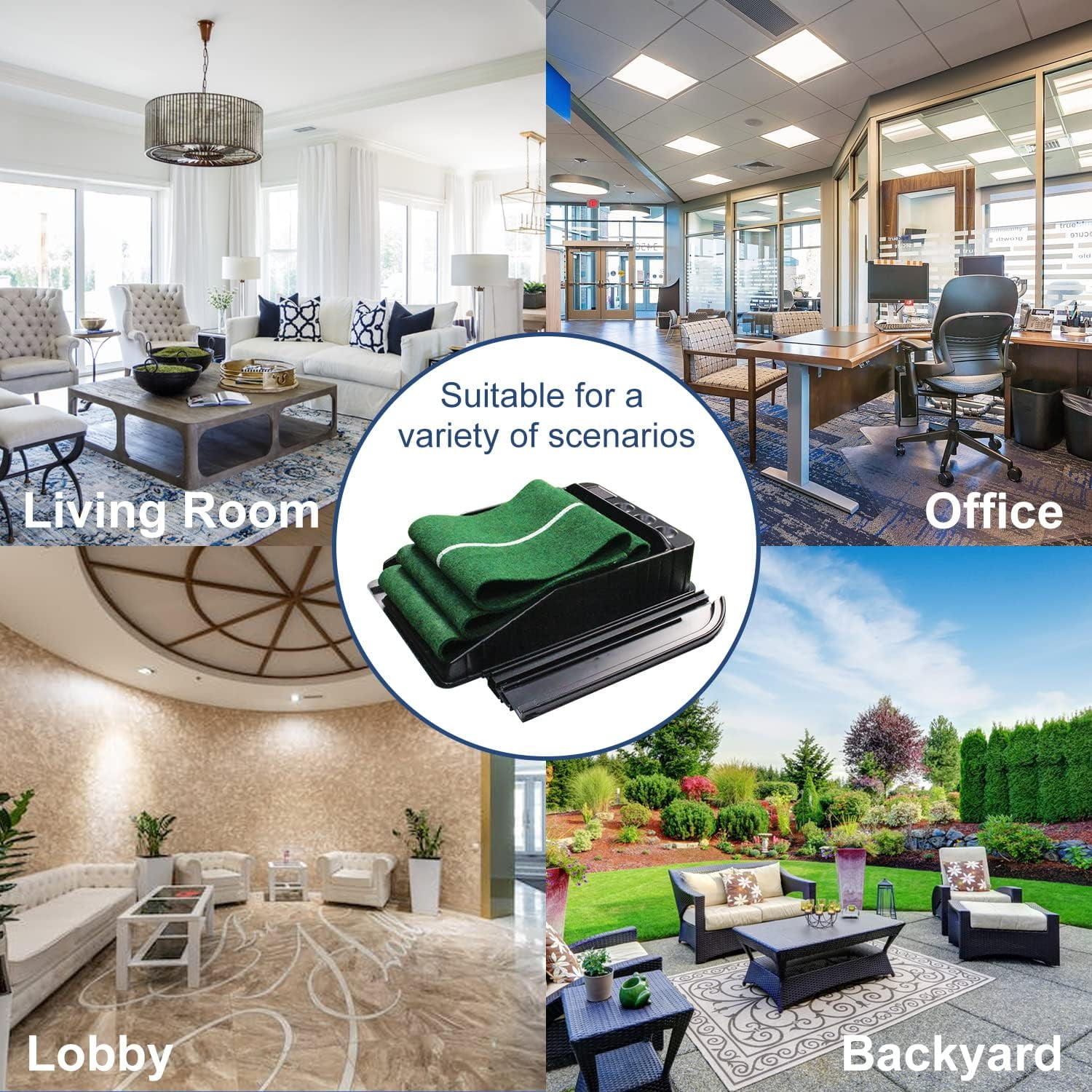 Our KOFULL putting mat for indoors is made of soft flannel which is not easy to crease and will not affect the path of the golf balls. This golf putting green has an alignment line, which helps you improve accuracy and control on every putt. True-roll surface and upslope emulate putts on actual greens. The Golf Putting Training Aid is easy to fold and carry, so you can enjoy every putt indoor or outdoors.