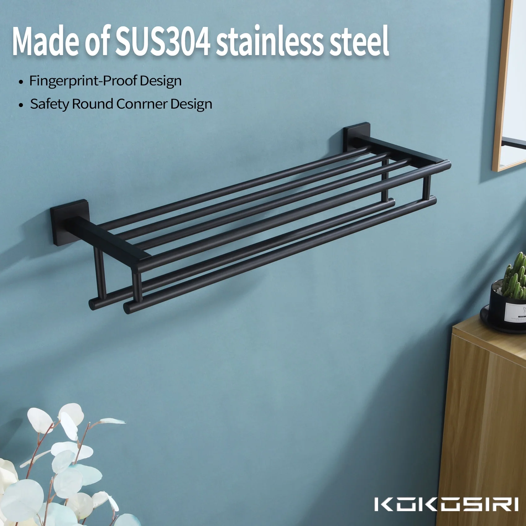 SPECIFICATIONS -Material : SUS 304 Stainless Steel -Suitable Surface : All kinds of the wall -Finish : Gold/ Black/ Brushed/ Chrome -Installation Method : Wall Mounted / Screw In Package Includes Towel Shelf x 1 Towel Bar x 2 Mounting Hardware Pack Installation Instruction Buy from KOKOSIRI * The surface which can protect against corrosion & rust * Stainless Steel material can steadily hold the stuff in 15KG * Ideal for bathroom, kitchen, laundry, garage, bedroom, etc * Provides Perfect Customer Service Warm Tips Be confident to shop with KOKOSIRI and knowing you are back by Manufacturer’s warranty. We offer a series of bath accessories for your entire bathroom. If you need any suggestions, just contact with KOKOSIRI.