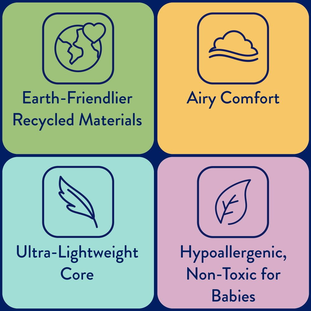 PREMIER FAMILY BRAND: Our crib mattresses are made in our family-owned facility in North Carolina, and always made with waterproof, hypoallergenic, and safety-tested materials. LIGHTWEIGHT: Easy-lifting lightweight at only 7 pounds so it’s easy to lift and change baby’s crib sheets. DURABLE: Passes durability and impact testing for lasting performance. Passes voluntary ASTM crib mattress standards to help ensure proper size and safety. AIRFLOW POCKET: Premier airflow pocket design helps keep the mattress fresh without small metal vents, an exclusive Kolcraft design. SNUG FIT: Square corner design creates a snug fit inside cribs. Measures 52″ L x 28″ W x 5.25″ H for a proper fit in all standard full-size cribs and toddler beds. FAMILY-FRIENDLY AIRY FOAM: Made with sustainable fibers derived from upcycled materials including ocean-bound plastics such as water bottles. WATERPROOF: Our exclusive pearl embossed covers are reinforced, durable and 100% waterproof to help keep the mattress protected against leaks that cause mold and odors. AIR QUALITY CERTIFIED: GREENGUARD GOLD Air Quality Certified for a healthier indoor environment. NON-TOXIC: Kolcraft baby crib mattresses pass Gold air quality certification and do not contain any toxic materials or flame retardants. IMPORTANT – CHECK THE SELLER PRIOR TO MAKING YOUR PURCHASE. Kolcraft cannot guarantee the quality or authenticity of Kolcraft products from unauthorized sellers on . To ensure the very highest safety and quality for you and your family, only buy from listings that are “Sold and Shipped by .” The Kolcraft warranty does not cover products purchased from unauthorized sellers.