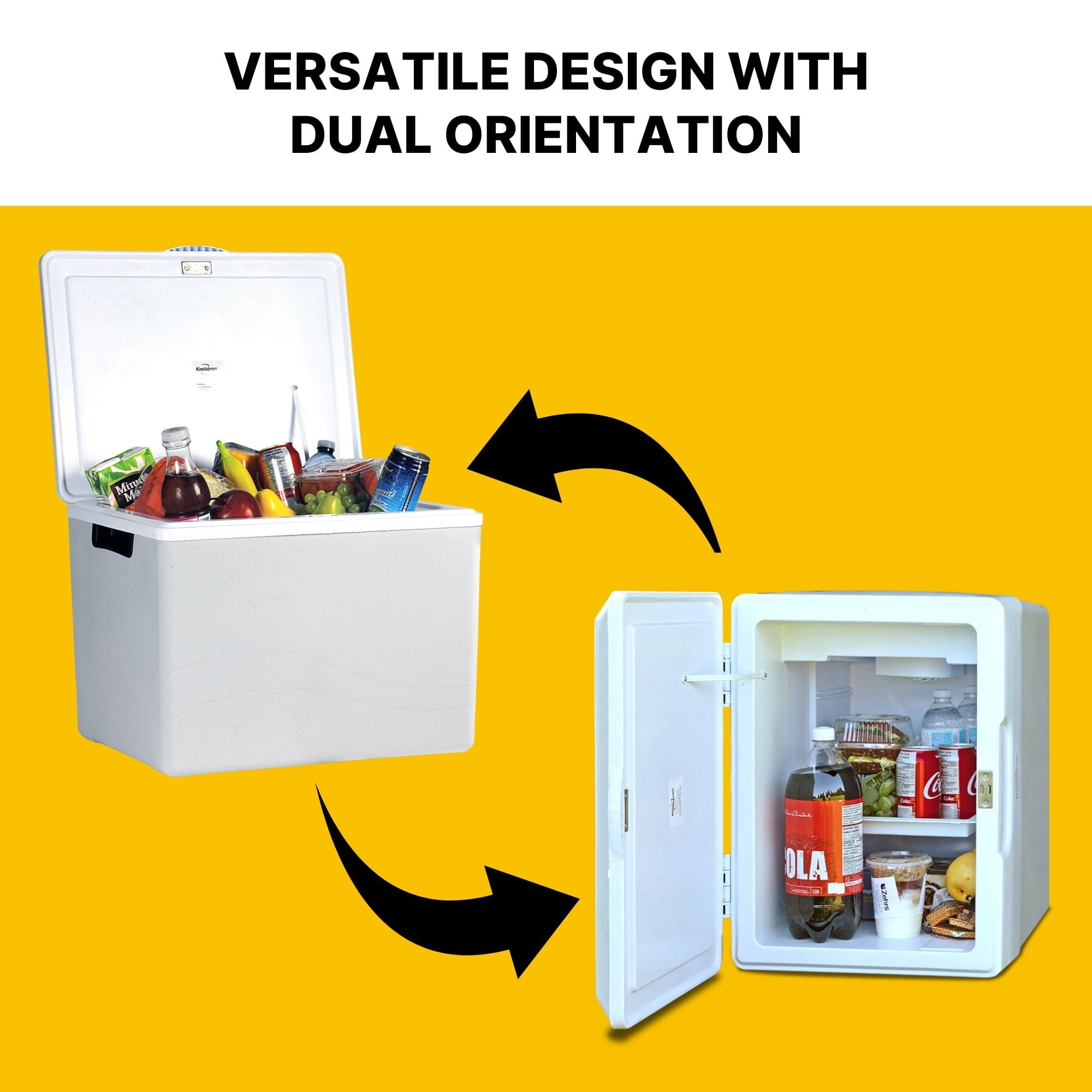 The Kool Kaddy 12V cooler/warmer is the perfect road trip accessory. This versatile 34L / 36 qt capacity travel cooler can be used upright as a classic cooler or on its side as a portable mini fridge on the road; add an AC adapter (sold separately) to seamlessly transfer from your vehicle to the indoors. The durable hard plastic injection molded exterior protects contents and ensures peak performance. Keep your favourite drinks cold without ice or safely store items such as yogurt, cheese, milk, and meats. Switch to warming mode to keep your lunch ready to eat, bring home take-out or transport hot dishes to a family gathering, using less power than your vehicle’s tail light.