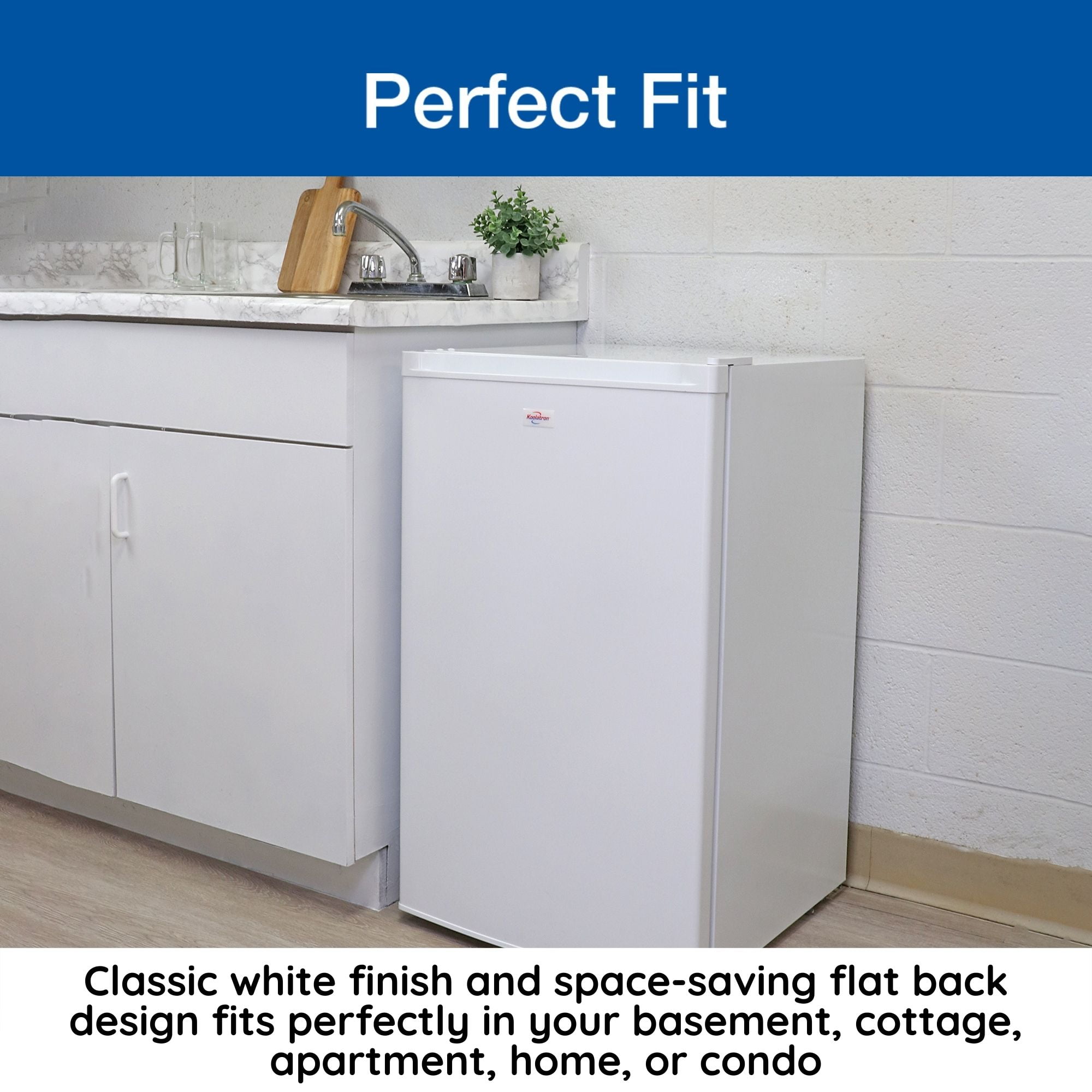 3.1 cubic foot Compact Freezer 88-liter capacity upright freezer Enclosed evaporator coils reduce frost build-up Space-saving design with a flat back and recessed door handle A reversible door can be installed to open the left or right Upright freezer with reliable and energy-efficient compressor cooling technology Manual defrost design saves energy and reduces freezer burn 3 pull-out baskets for easy organization of contents Temperature range from 0 to -24C (32 to -11.2F) External thermostat lets you adjust the temperature without opening the door Classic white exterior suits any decor Ideal size for cottage, apartment, or condo