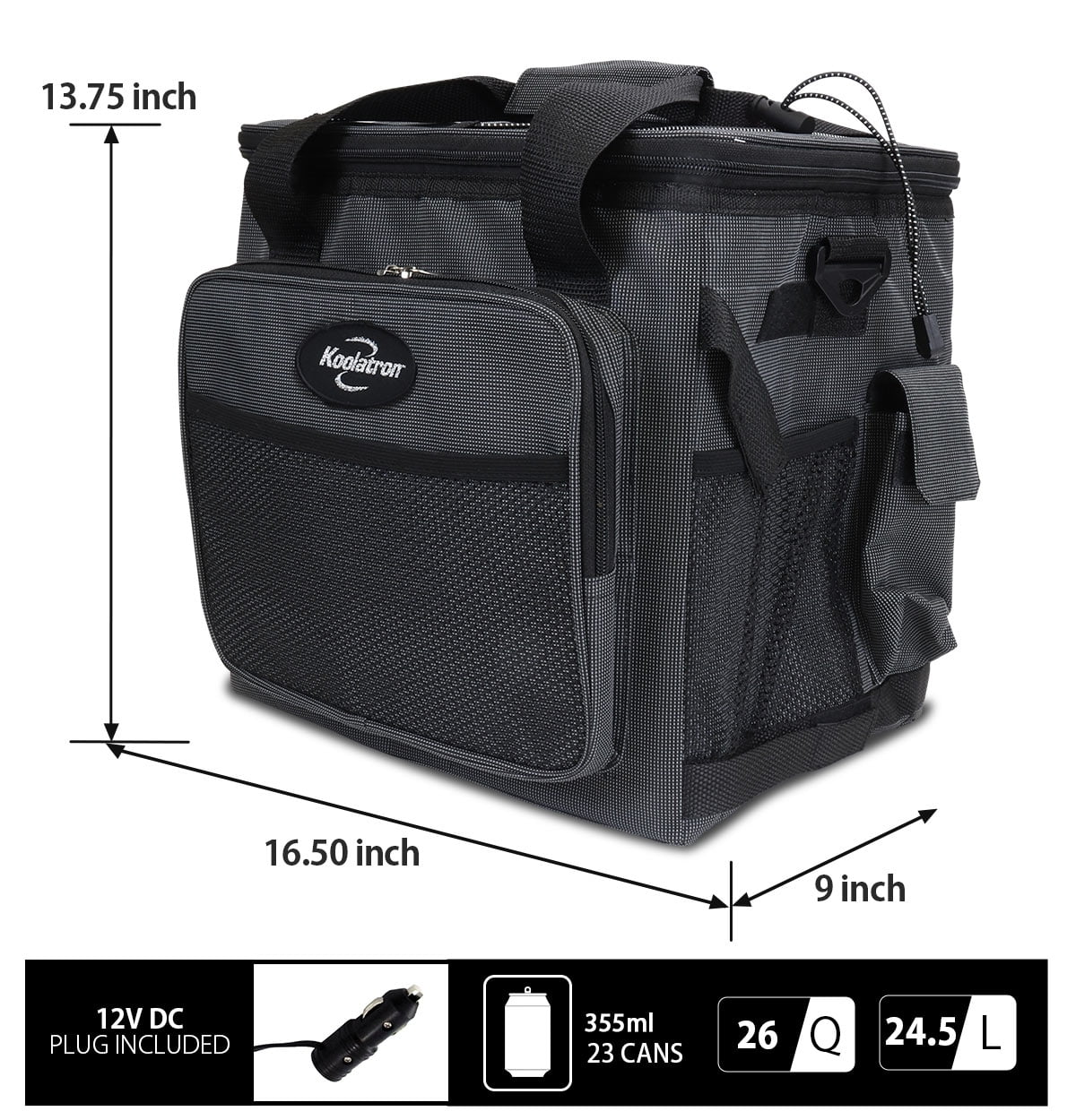 Save time and money while traveling with fewer stops and no expensive restaurant bills. Just pack your Koolatron D25 Hybrid Portable thermoelectric iceless electric cooler with your favorite food and beverages and plug into your vehicle’s 12V outlet for reliable iceless cooling. Use the AC adapter to seamlessly transfer the cooling power from your vehicle to the cottage, home, or hotel room. With its 24.5L capacity, this cooler has room for all your needs, and it easily collapses when empty for space-saving storage. Trust in reliable iceless cooling technology Efficient and eco-friendly thermoelectric technology with no CFCs makes this the perfect travel accessory for your car, boat, or RV, effectively keeping items cool to 40°F (22°C) below room temperature using less power than your vehicle’s tail light. Advanced thermoelectric technology will not be affected by the movement of your vehicle, making this cooler the perfect choice for road trips, family picnics, camping, and boating. Koolatron Thermoelectric Iceless Electric Cooler Bag, 12Volt 26 qt (25 L) Black Gray