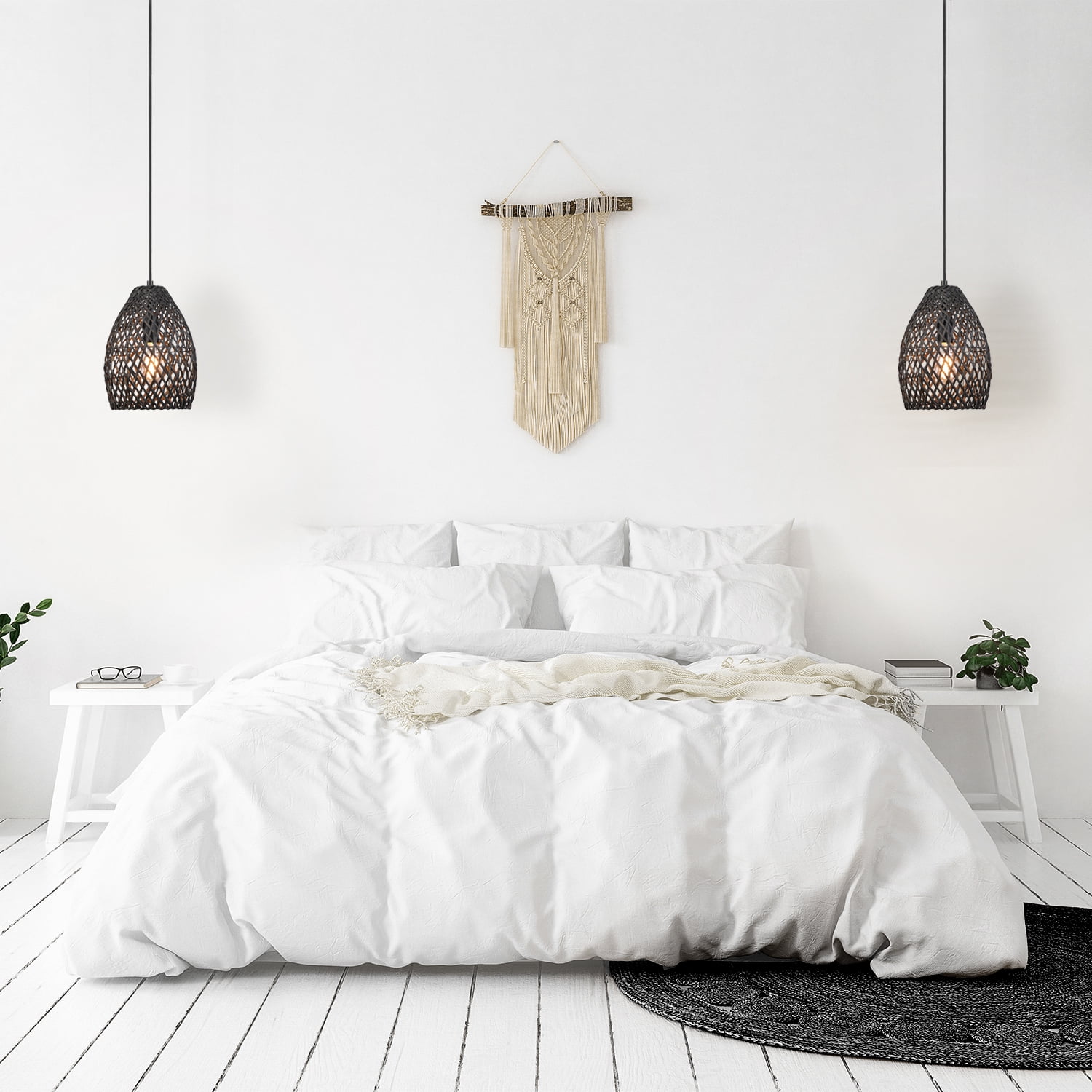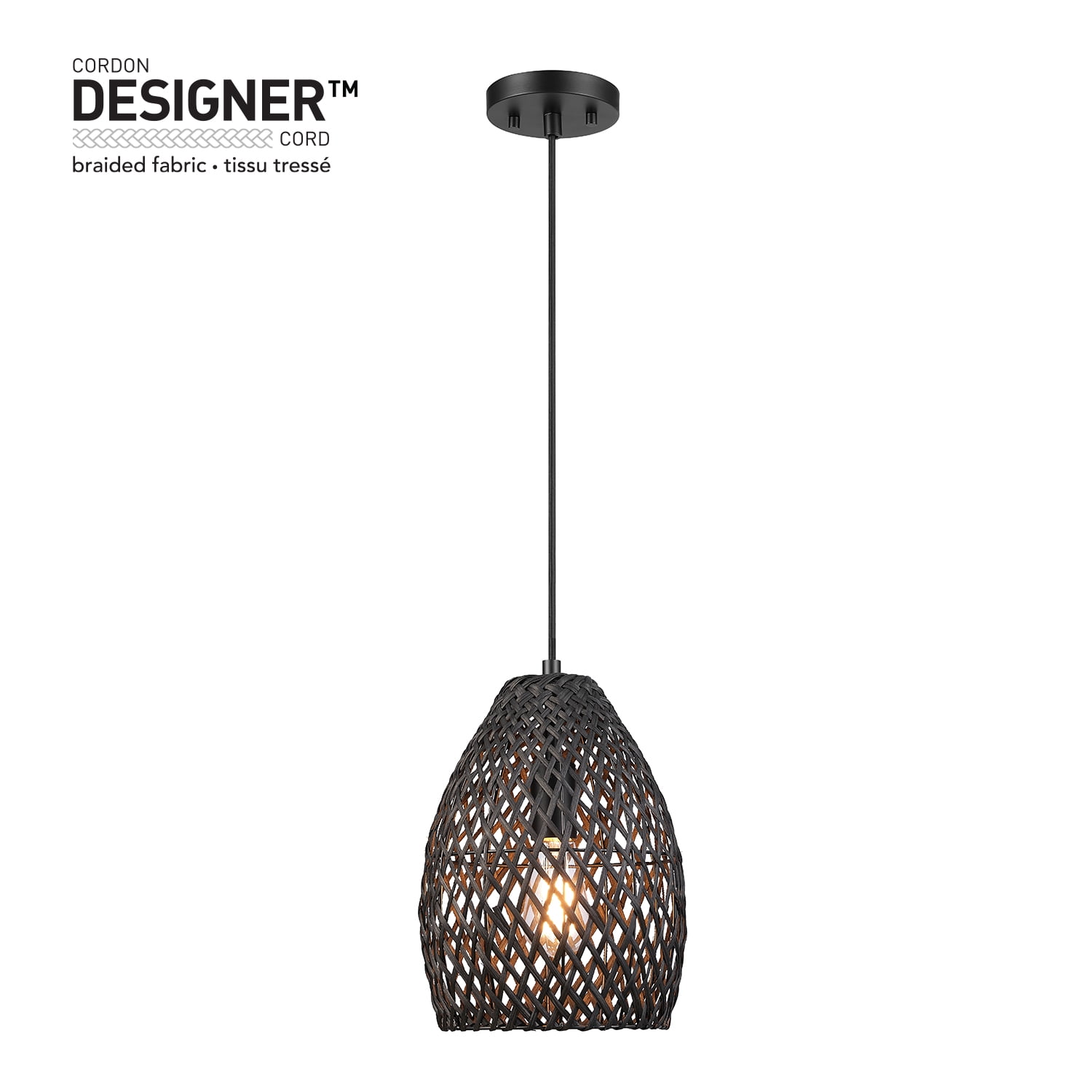 With a stunning egg-shaped matte black twine shade and black cloth hanging cord, the Globe Electric Kora Pendant Light offers a sense of comfort and romance in a trendy cottagecore design. Considered a new neutral with interior designers, the black color palette brings a warmth to any space while complementing all decor styles. Ideal for hanging in your bedroom, living room, kitchen, or den, the adjustable designer braided fabric cord lets you choose the height that works best in your space.