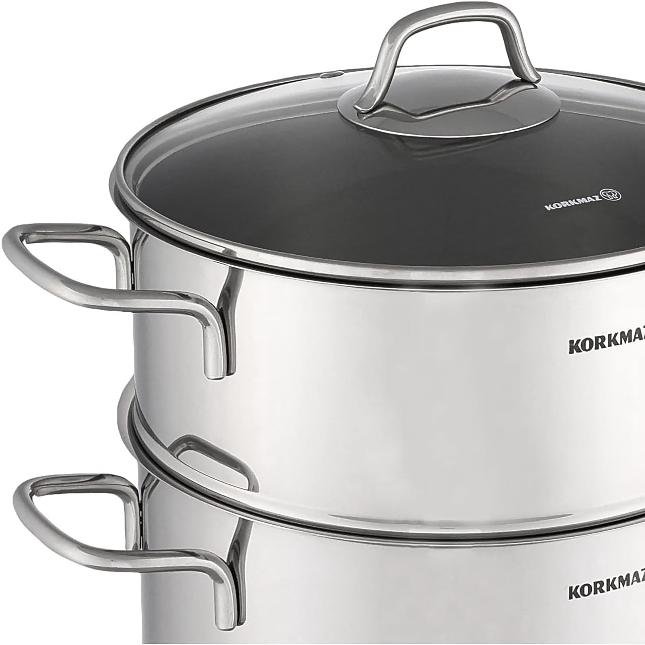 Korkmaz Perla 3 Piece 6.9 Liter Stainless Steel Casserole Steamer with Lid in Silver
