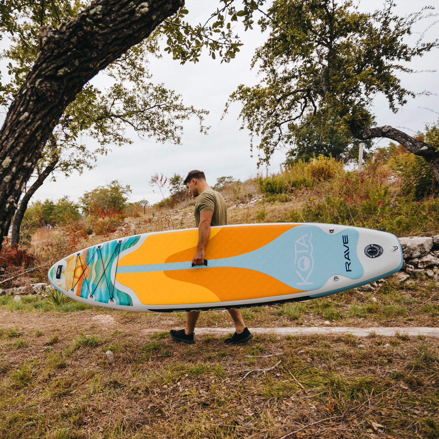 For those who love sunsets on the water! If you love those calm evenings on the lake, the Sunset Kota is for you. Durable and lightweight: Constructed with our Rigid Drop Stitch Air Beam Core construction for the ultimate in a durable, yet lightweight, inflatable paddle board. The KOTA iSUP Series is lighter than most quality inflatable paddle boards. Convenient, portable package: Includes everything paddlers need to get out on the water wherever they go. Designed for easy, convenient portability and storage. All the extras: Features include a hull designed to shed water, military-grade PVC material with double layered sidewalls, large comfortable non-slip foam deck pad, elastic straps to take along your PFD and gear, and a neoprene covered grab handle. includes: One KOTA iSUP, fin, hand pump, paddle, leg leash, backpack carry bag, repair kit