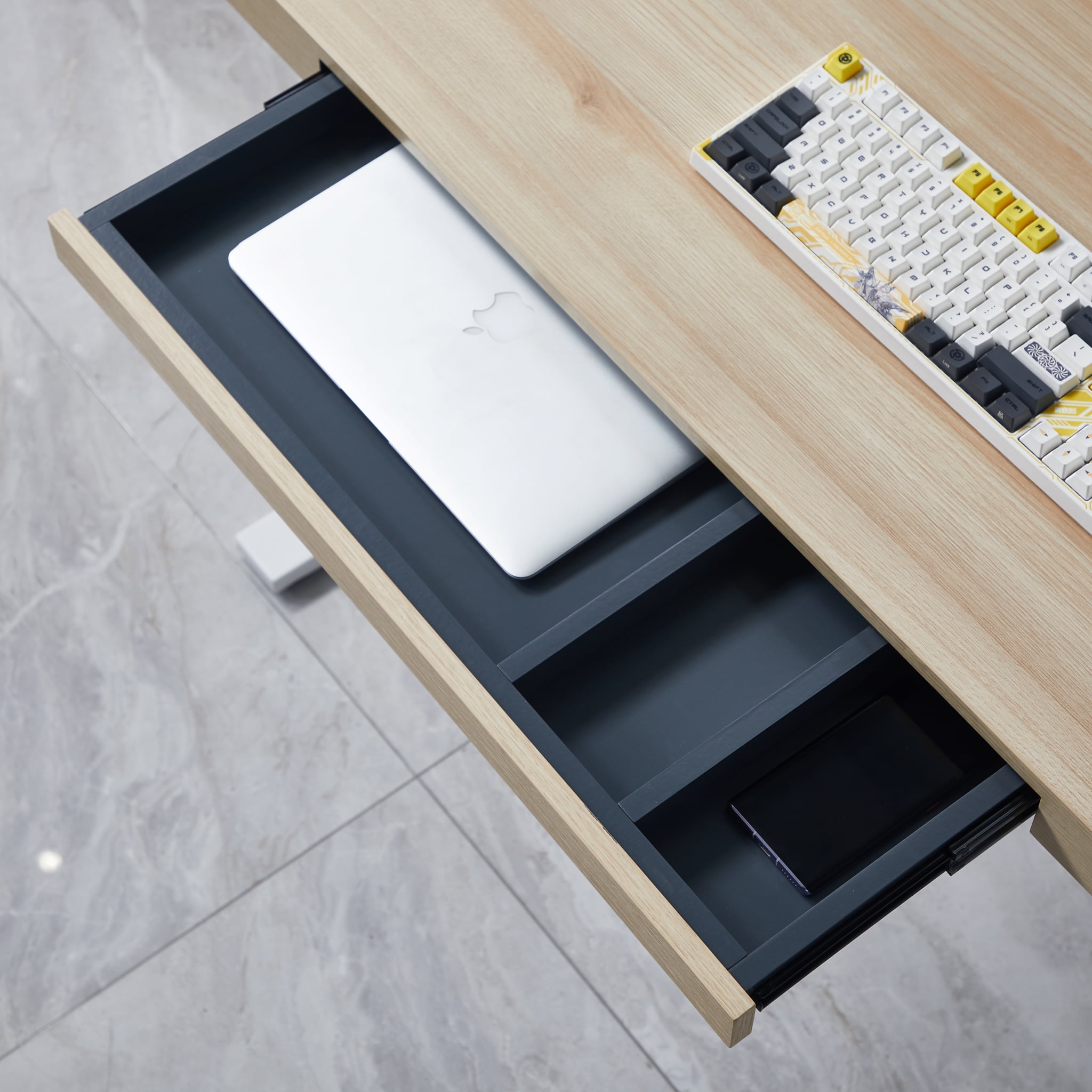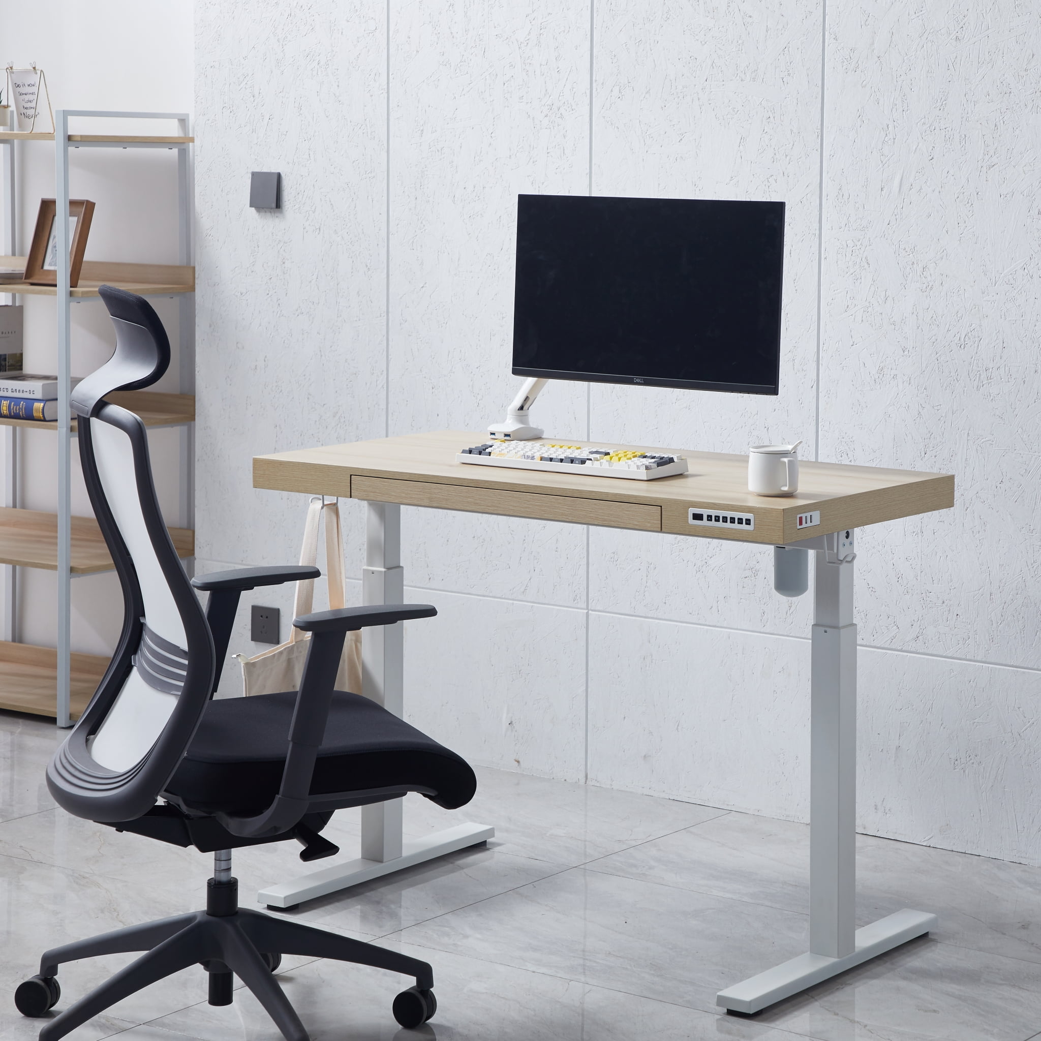 KOWO K305 Electric Height Adjustable Standing Desk with Drawer, Natural/White