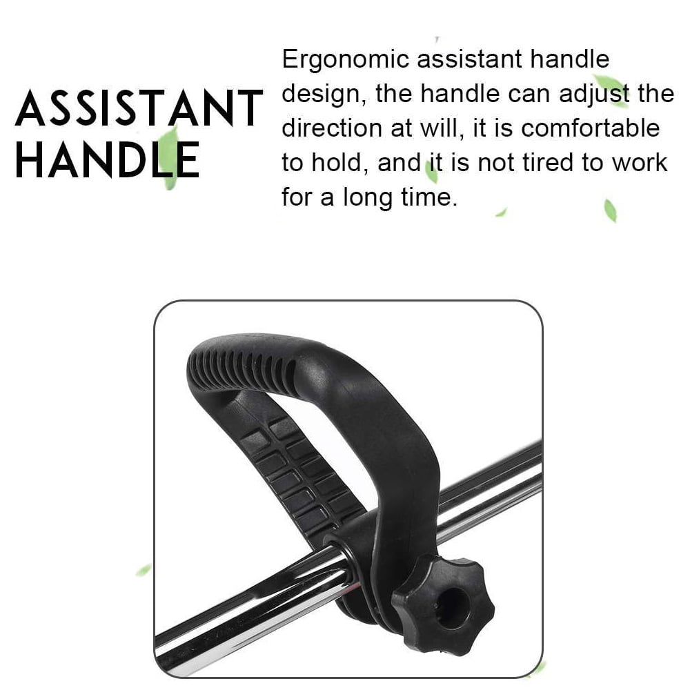 Adjustable Assistant Handle: Ergonomically designed handle can be adjusted to any direction for comfortable long-term use. Grass Guard Board: Equipped with a grass guard board that prevents weeds from splashing during weeding. Telescopic Rod Design: Lightweight and easy to carry. One-button control allows for adjustable length (36.3in to 48in) to accommodate different user heights. Waterproof Low-Noise Head: The 650W high-power head is waterproof and produces low noise. Easy to clean. Double Control Switch: Requires both switches to be pressed simultaneously for starting, preventing accidental touch and enhancing safety. Double Control Switch: Requires both switches to be pressed simultaneously for starting, preventing accidental touch and enhancing safety.