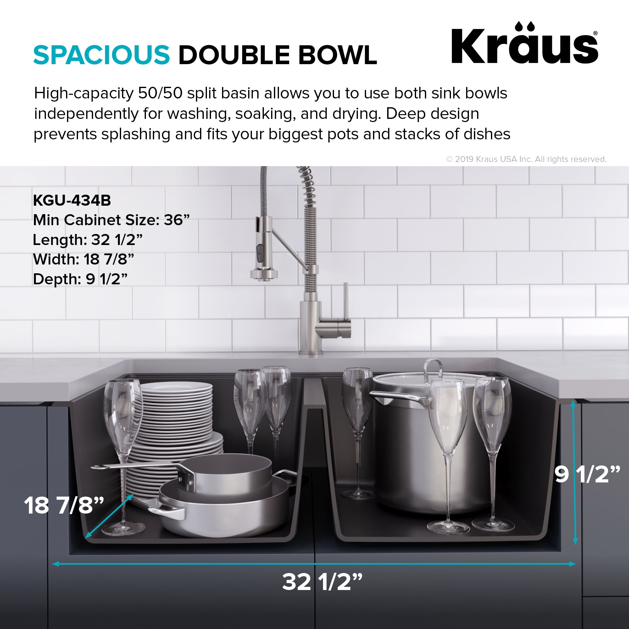 Kraus 33 Inch Undermount 50/50 Double Bowl Black Onyx Granite Kitchen Sink