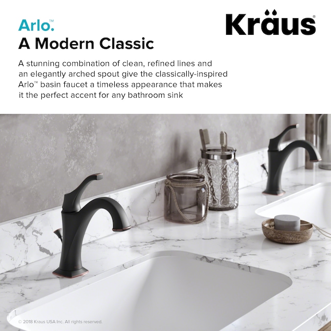 A combination of clean, refined lines and an elegantly arched spout give the classically-inspired KRAUS Arlo™ basin faucet (KBF-1201ORB) a timeless appearance that makes it the perfect accent for any bathroom sink. Matching lift rod drain included.