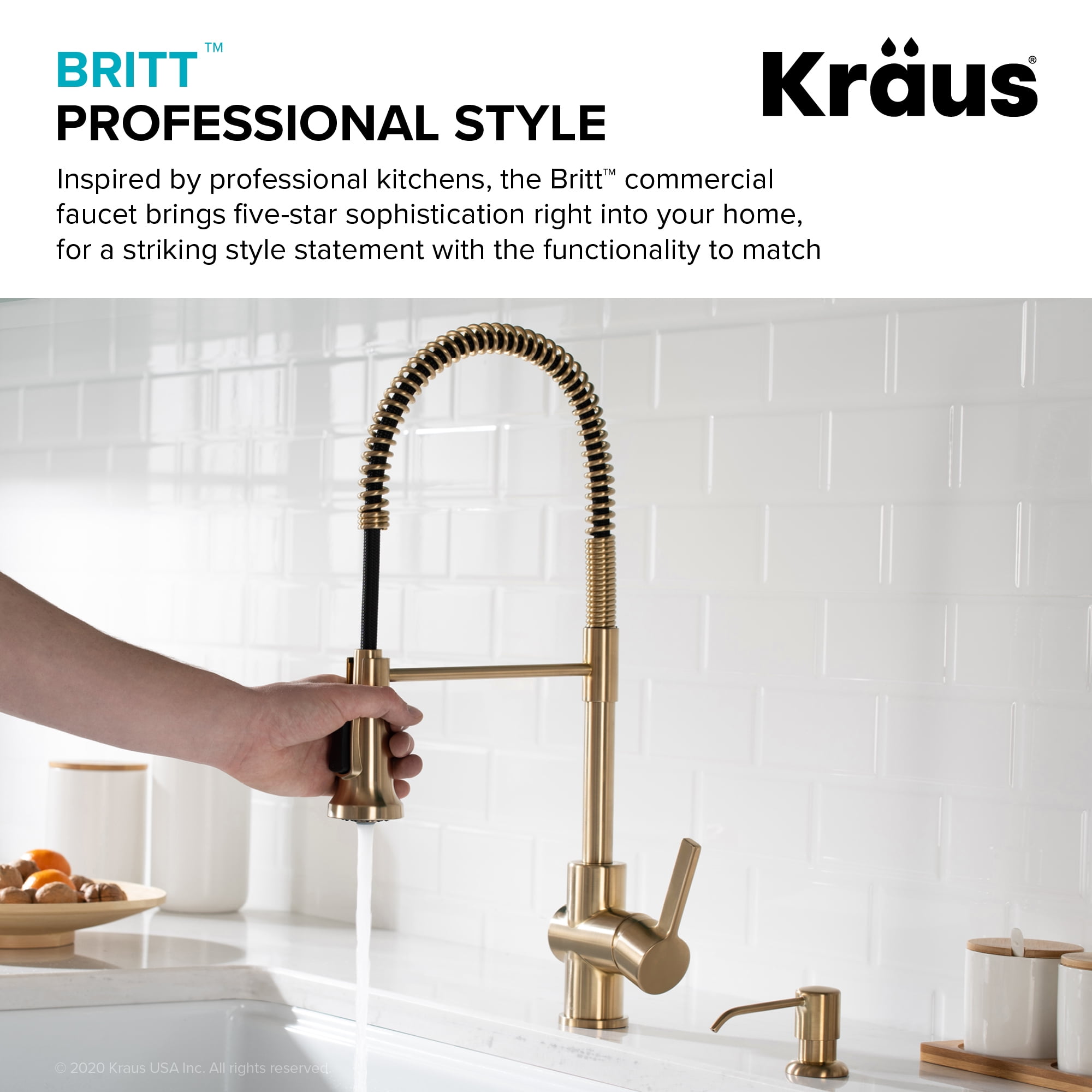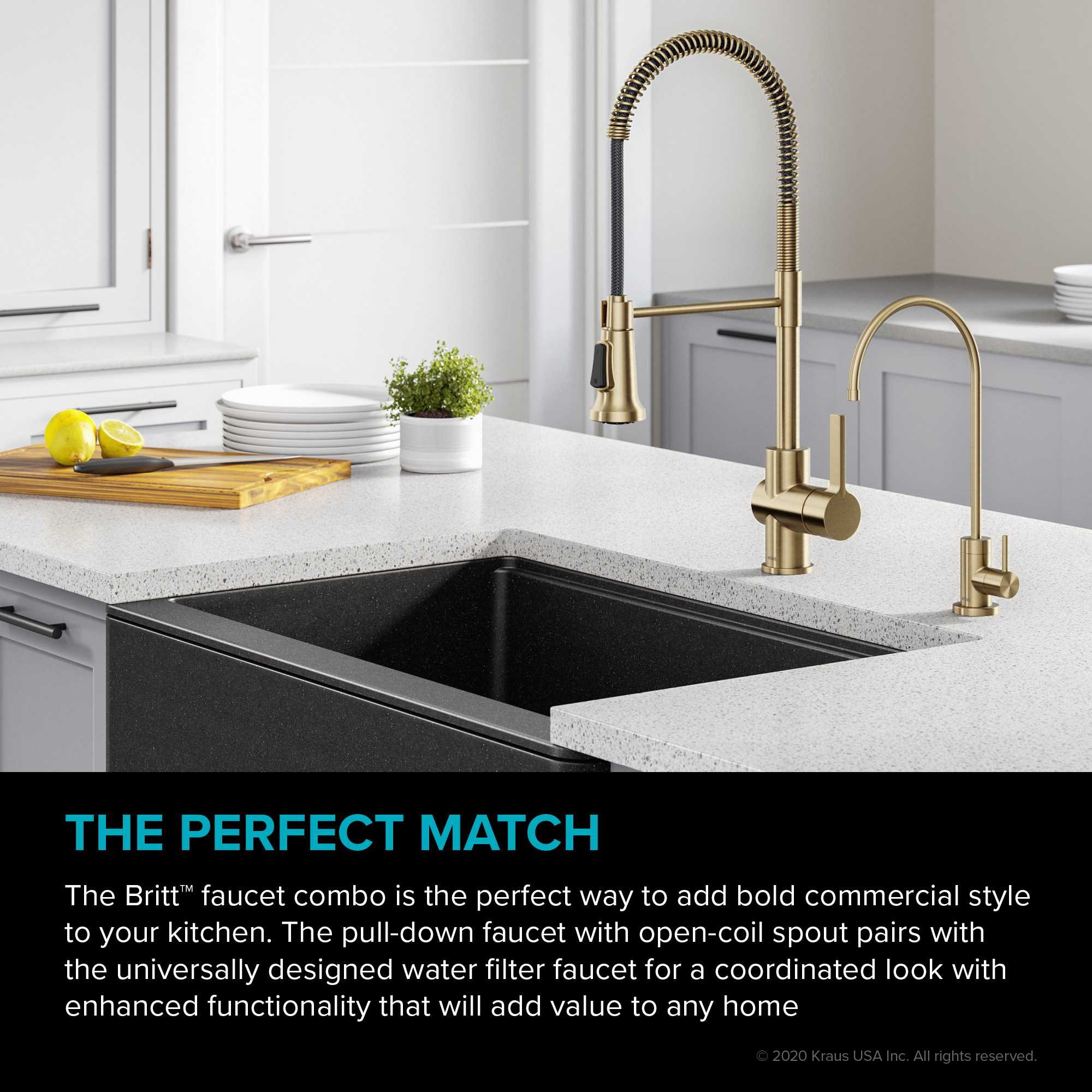 KRAUS Britt Commercial Style Kitchen Faucet and Purita Water Filter Faucet Combo in Brushed Gold