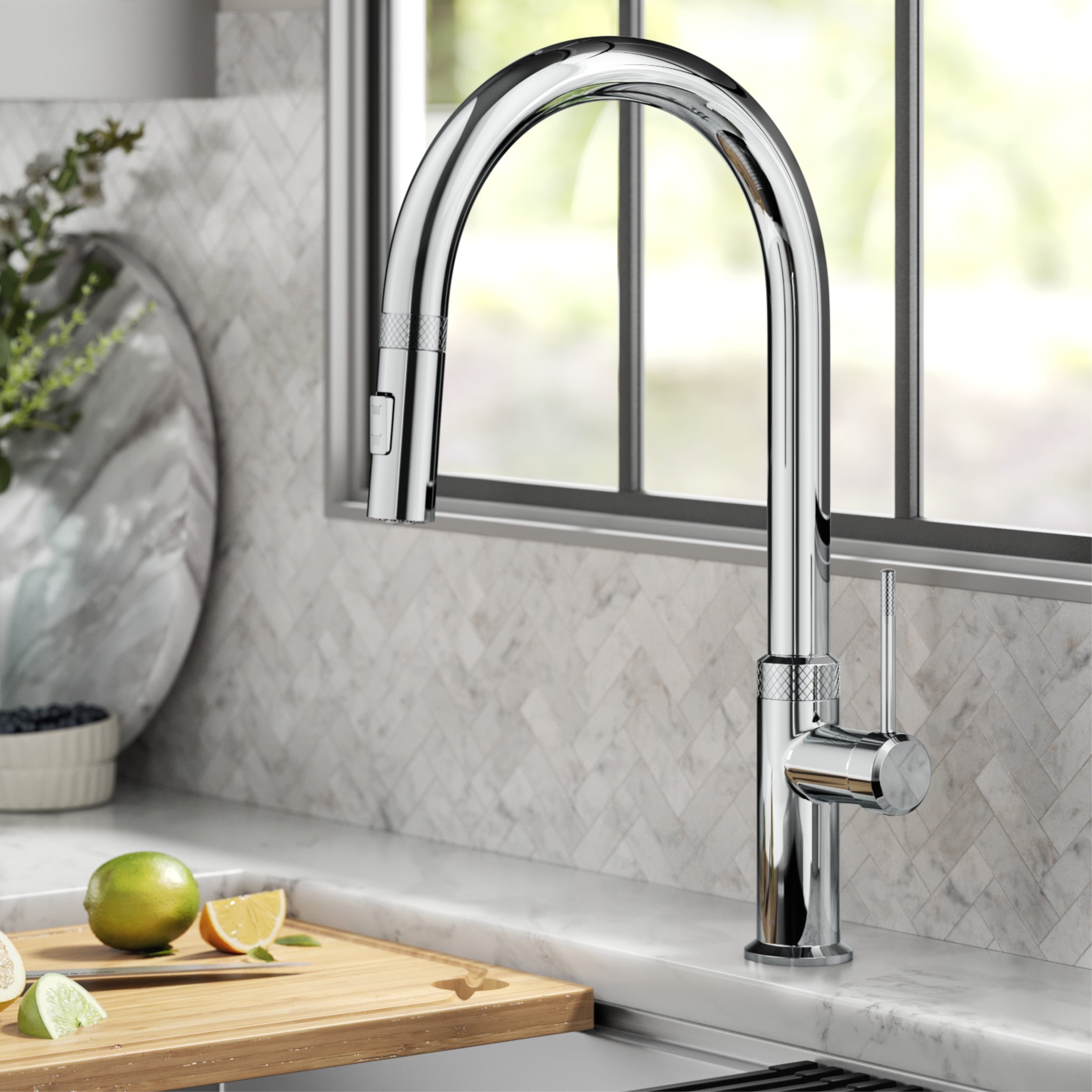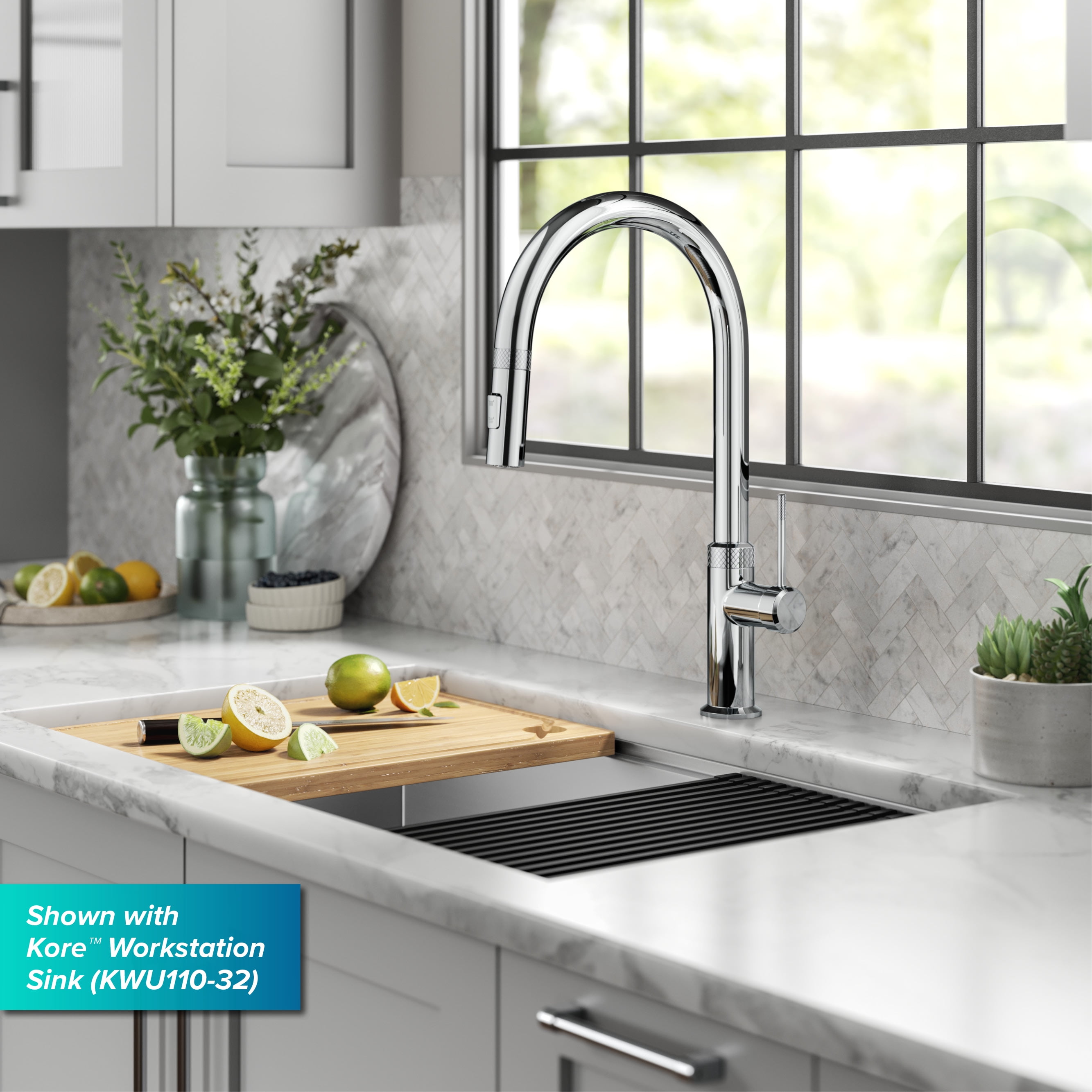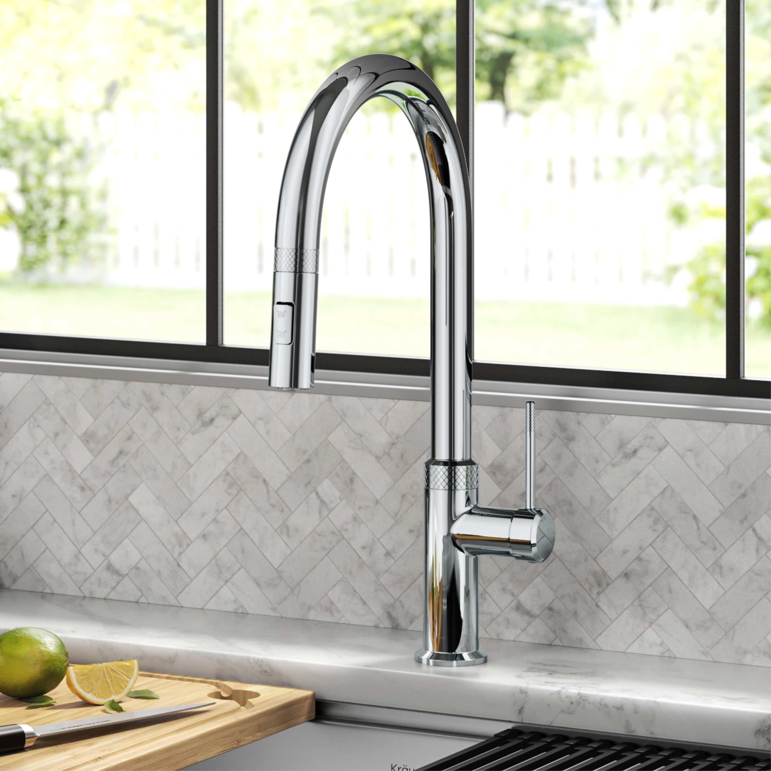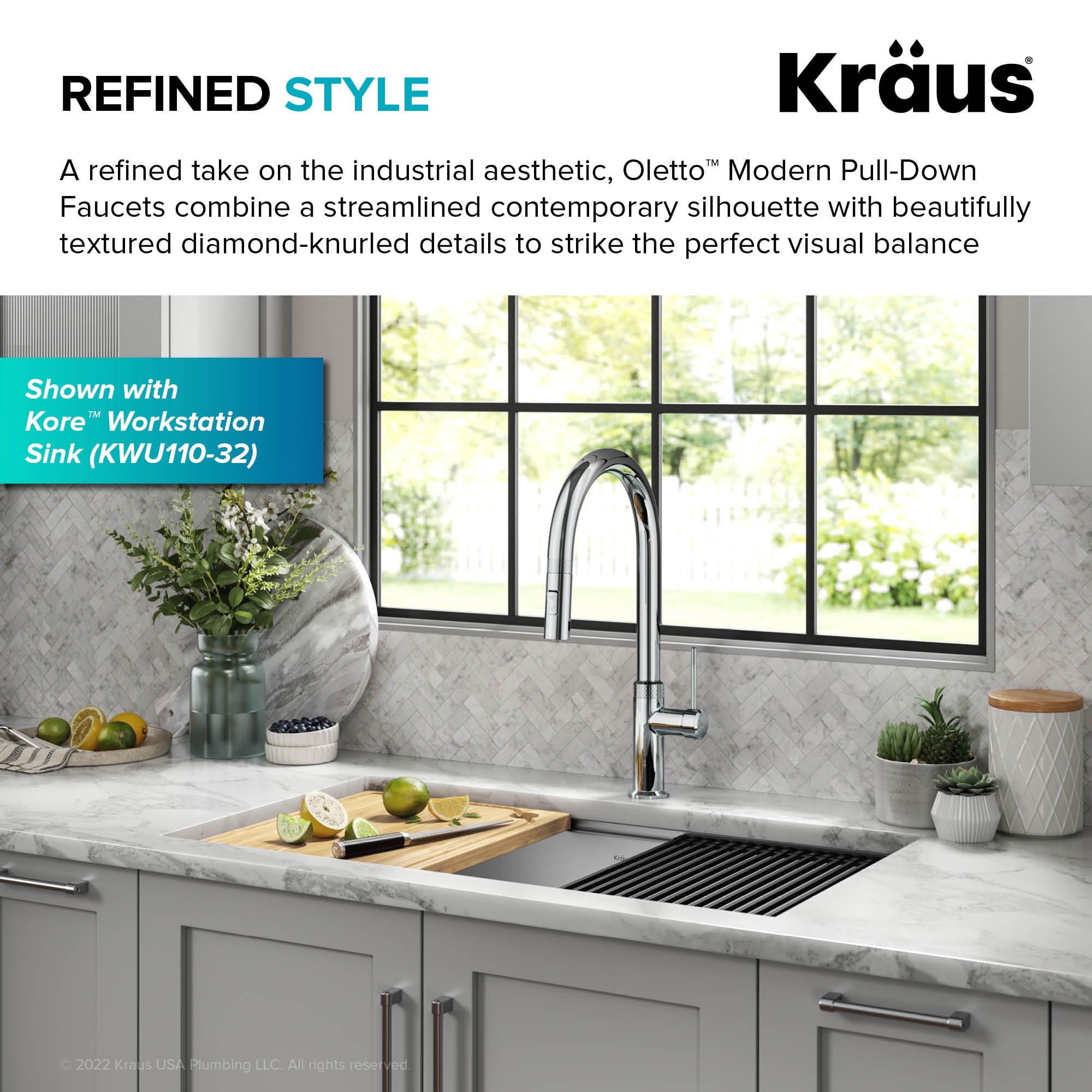 KRAUS Oletto Modern Industrial Pull-Down Single Handle Kitchen Faucet in Chrome