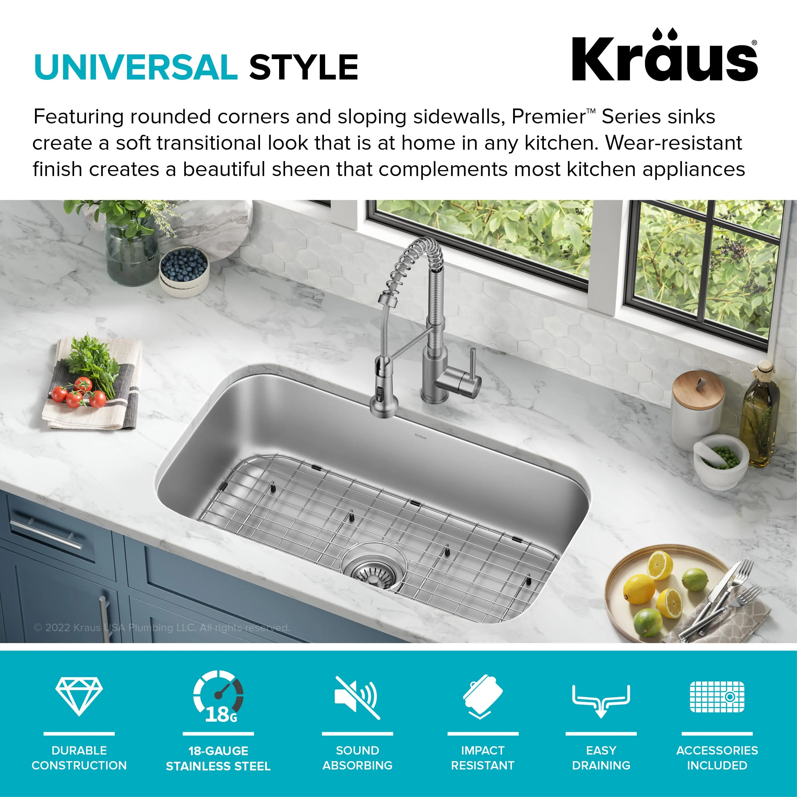 KRAUS Premier 32” Undermount 18-Gauge Stainless Steel Single Bowl Kitchen Sink