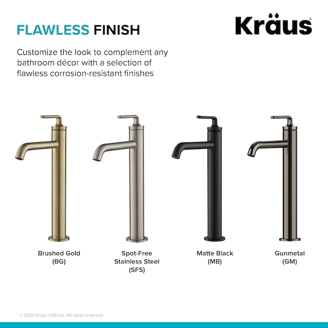Suitable for an endless range of projects, Ramus™ vessel faucets have a streamlined universal design that creates a high-end modern look in any bathroom. 100% lead-free solid brass and premium components offer a lifetime of reliable performance. Comes with matching pop-up drain and pre-attached water lines for easy installation with any vessel sink