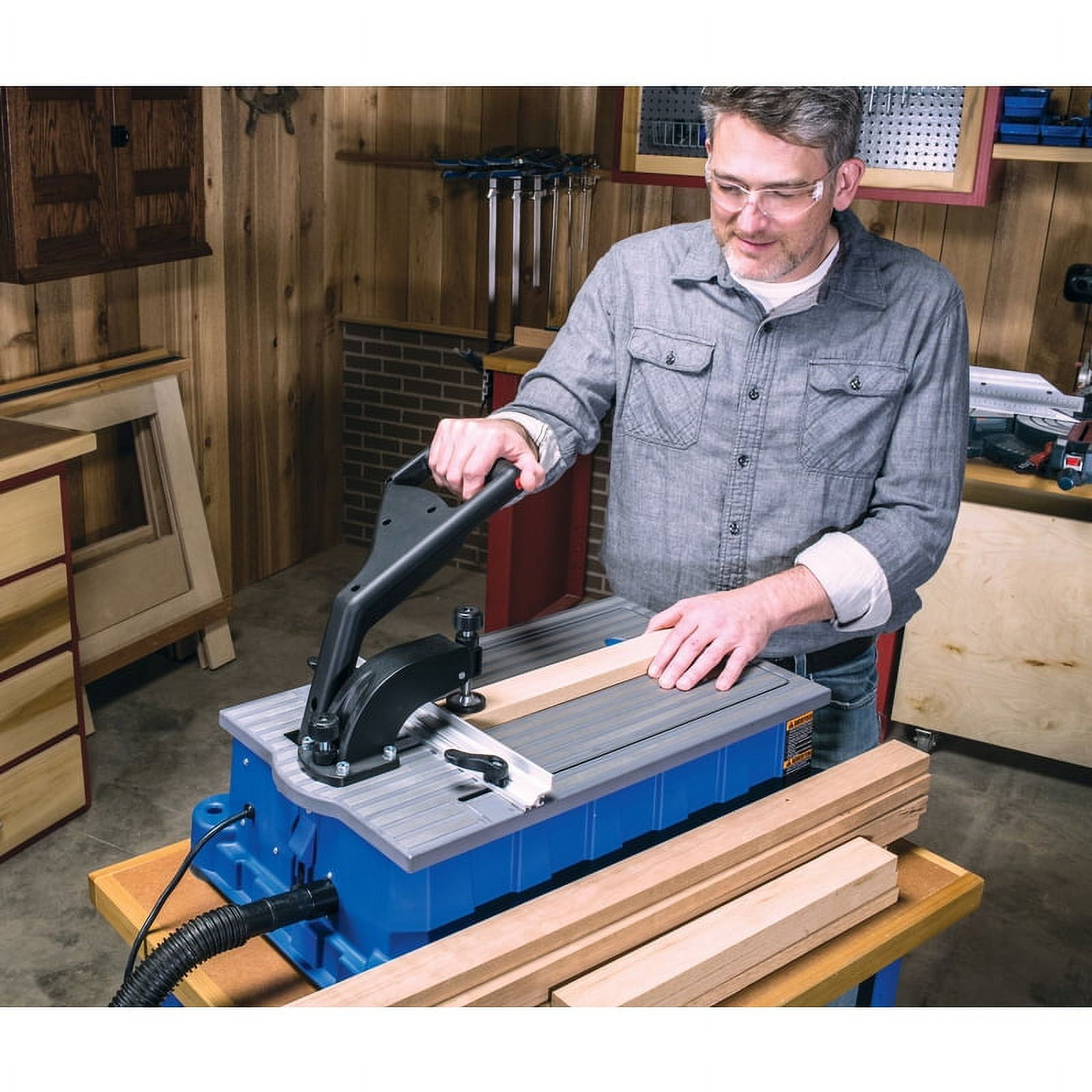 The Kreg DB210 Foreman is an accessible carpentry tool. The pocket holes are created easily and the built-in dust collection bin keeps your workshop or jobsite clean. This carpenters’ tool has 3 joint sizes—from compact angle holes in thin stock to strong joints in thicker stock. The adjustable fence uses spring-loaded stops for precise pocket depth. Kreg’s pocket-hole machine is portable, and, at 20 pounds, is easy to move from jobsite to jobsite. To keep your station clean, in addition to the dust collection bin, this woodworking accessory has a storage compartment underneath the table to hold screws and materials. At Kreg, woodworking is our passion. We take pride in a project well-done, and we understand how important the tools at hand are to the final product. That’s why we craft the very best woodworking tools. We want our customers to feel confident in their ability to finish quality products with Kreg tools in hand.