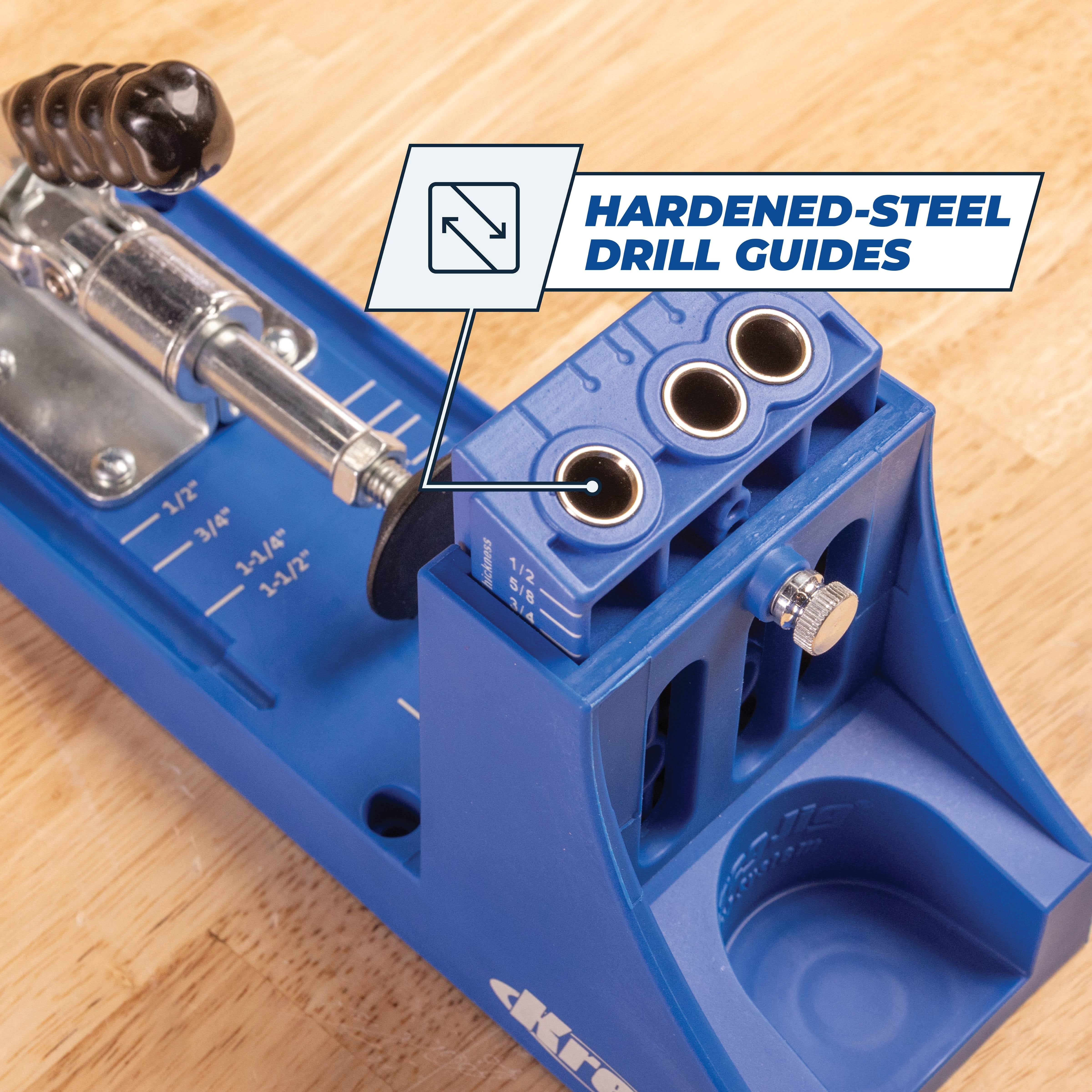 Easy Woodworking Tools: Kreg pocket-hole joinery is the fast, strong, easy way to join wood-drill, drive, and done Adjustable Pocket-Hole Jig: The Pocket-Hole Jig K4 gives you the precision and adjustability of a proven, time-tested pocket-hole jig trusted by DIYers and pros Customizable Setup: This pocket-hole jig has a 3-hole drill guide for pocket holes, perfect for use with materials from 1/2″ to 1 1/2″ thick
