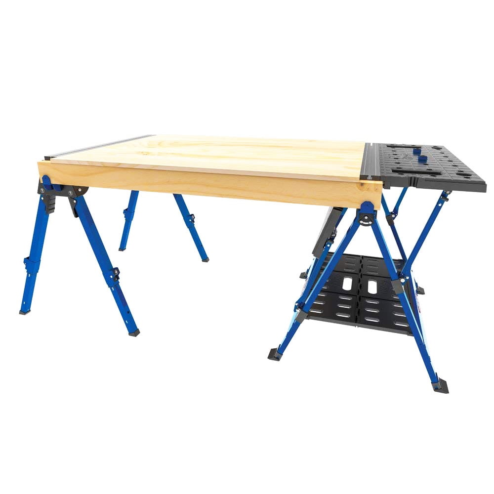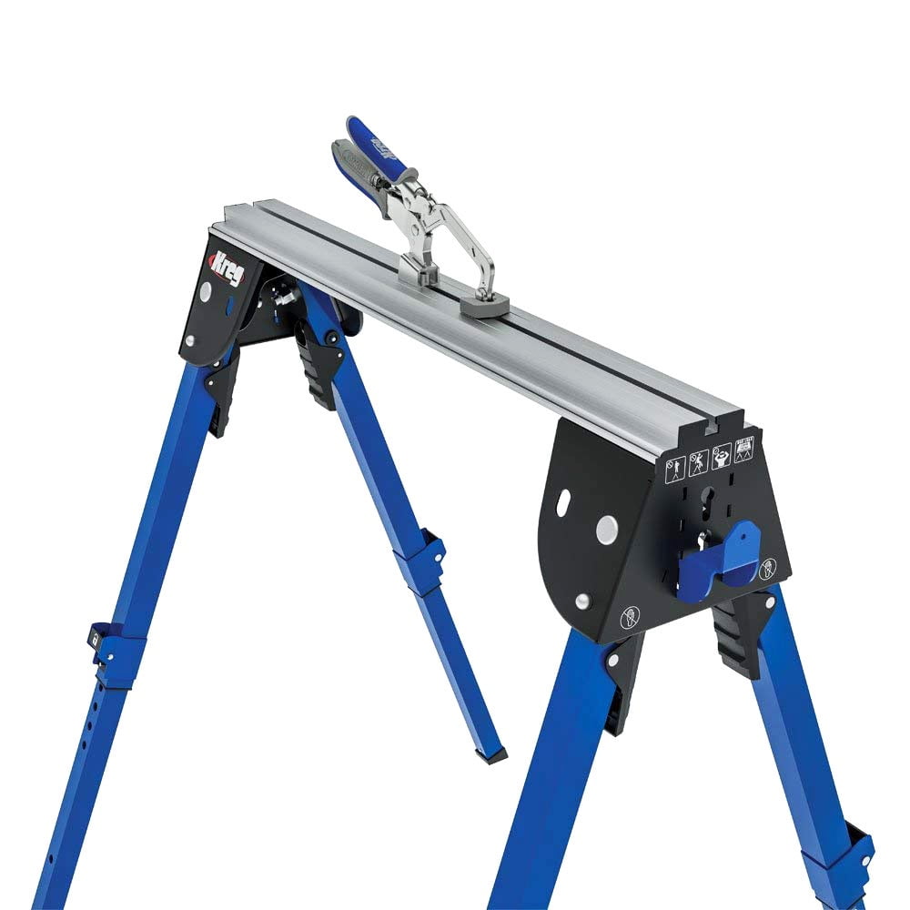 Kreg KWS500 Track Horse Tool, Expandable and Folding Saw Horse, Sawhorse Table Tools for Home Improvement: Aluminum and steel track horse works as a clamping center, work support, sawhorse, and more. Portable Track Horse: Adjustable sawhorse has 6 different heights. Folds for storage and transportation. Combine with Kreg Sawhorses: 2 track horses can hold up to 2,200 pounds. Can create a large workspace. Includes Other Woodworking Tools: Includes a Kreg 3-inch bench clamp, 4 support brackets, 2 track bushings with screws, and instruction manual. Premium Kreg Tools: We offer products that help woodworkers close the gap between idea and outcome.