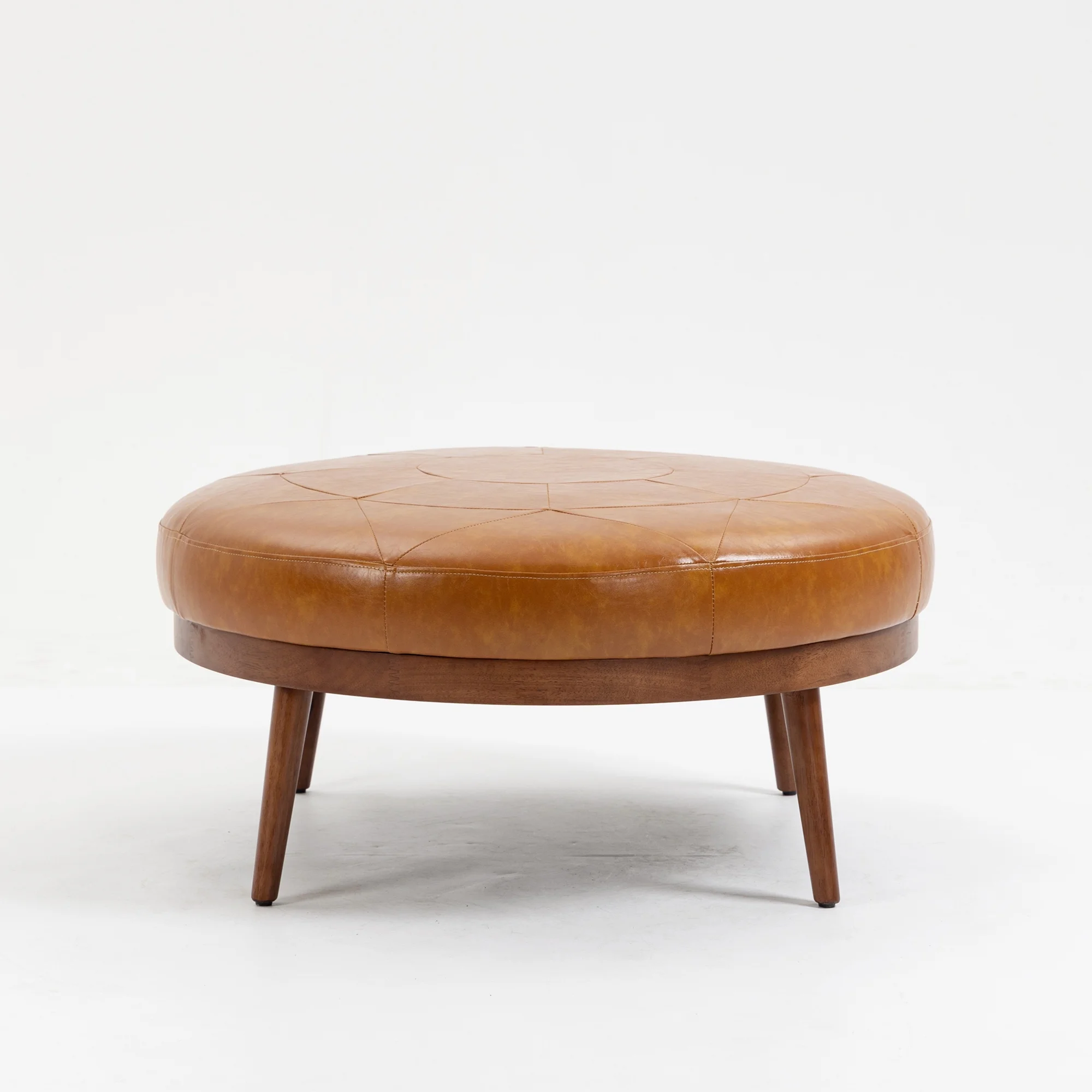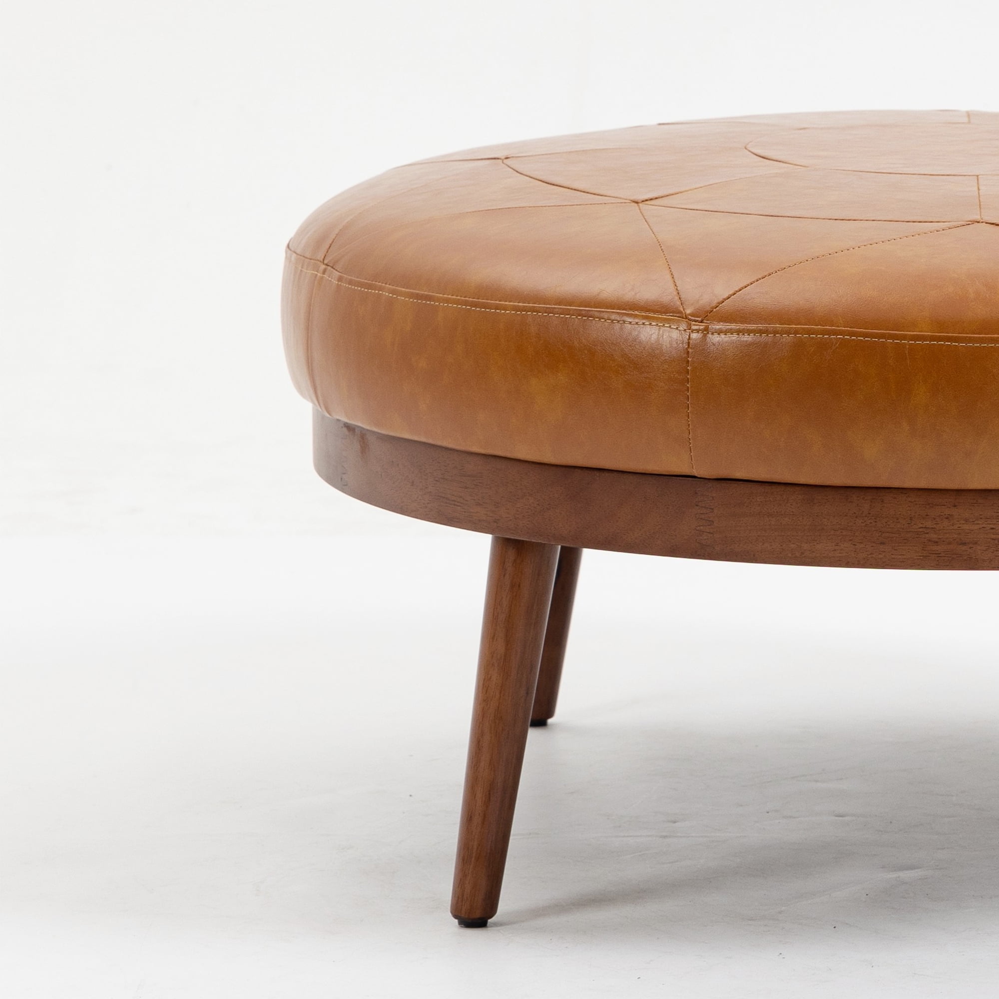 The 36-inch round cocktail ottoman exudes elegance and functionality, making it a versatile addition to any living space. Crafted with a sturdy wood framing, it ensures durability and stability for years to come. Upholstered in luxurious PU leather, it offers a touch of sophistication and easy maintenance. Available in a choice of tan or cream colors, it effortlessly complements various interior styles while providing a comfortable surface for relaxation or serving.