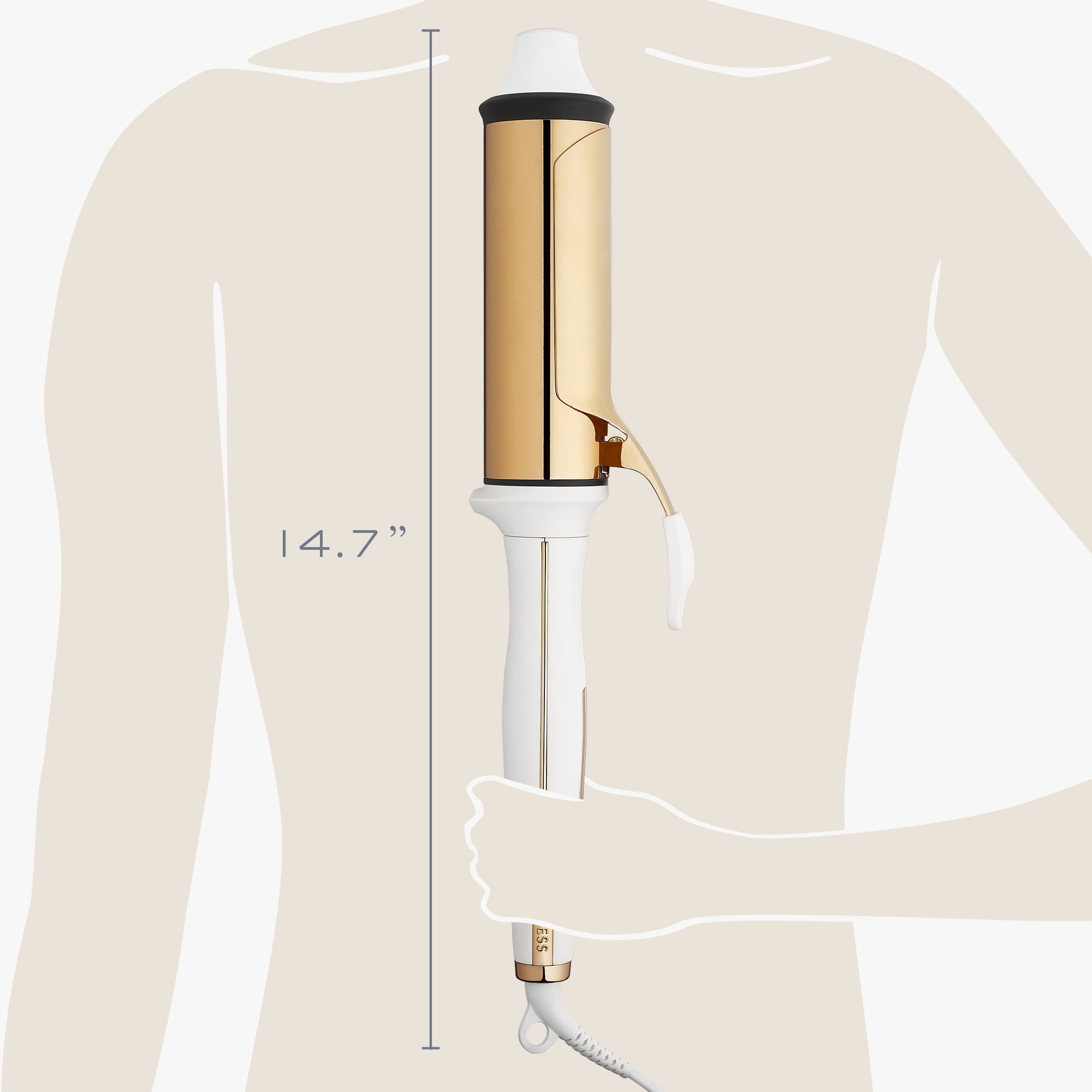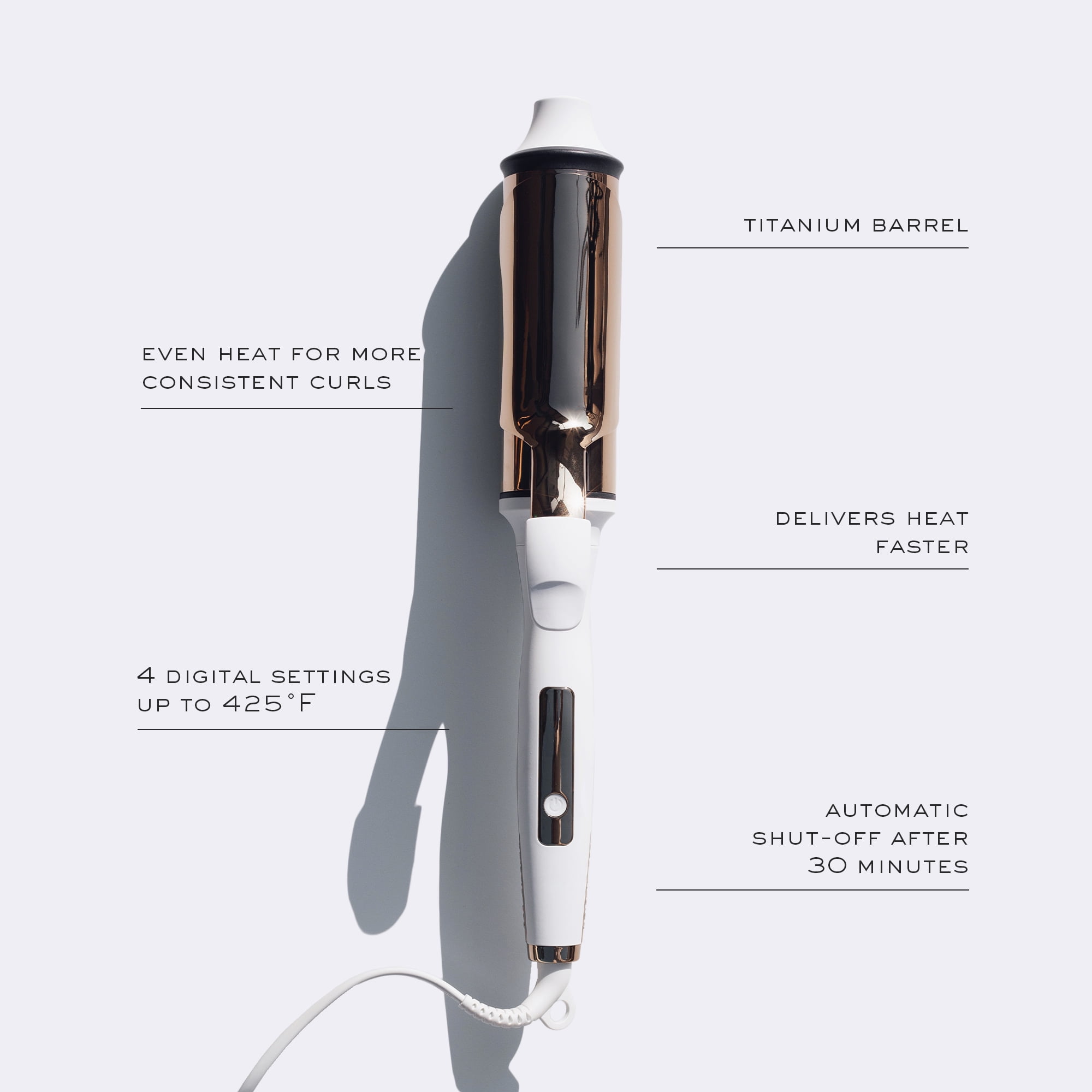POLISHED CURLS + BEACHY WAVES – Bend the ends for a more polished look or slide the curling iron straight through your ends for a more undone, relaxed look QUICK + EFFICIENT – Temperature sensing rapid heat technology delivers fast, even heat for more consistent curls and longer lasting styles SHINE ON – Titanium barrel transfers heat to deliver negative ions that enhance shine and eliminate frizz SMOOTH OPERATOR – Super smooth barrel with ergonomic thumb grip and heat resistant cool tip minimizes friction on the hair and eliminates creasing TO EACH THEIR OWN – Digital display + 4 temperature pre-sets (up to 425°F) allow you to customize the temperature based on your hair type and texture STRESS LESS – Automatic shut-off after 30 minutes, built-in safety stand and 9 ft. swivel cord
