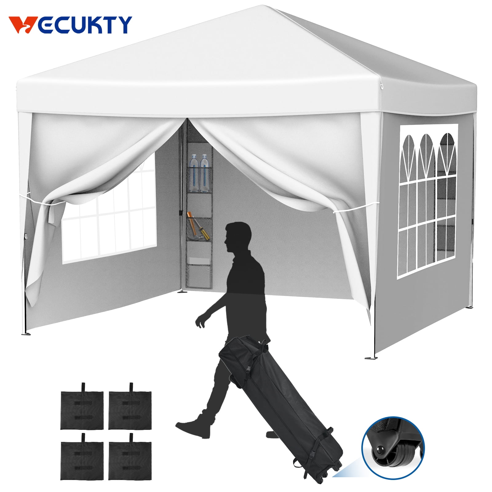 Features: Quality Construction for Stability Crafted with precision, the plastic connectors between the tubes reinforce the stability of the tent frame. Our party tent features a rust- and corrosion-resistant white powder-coated steel framework, with steel tubes and new material plastic connectors for unmatched strength. Ropes and stakes are included to provide added stability in any setting. Attention to Safety and Weather Conditions We prioritize safety, and we advise customers not to leave the patio tent up overnight or in unfavorable weather conditions. While the party tent is durable, we are not responsible for weather-related damages. Customers are urged to make informed decisions based on weather conditions. Additionally, the polyethylene fabric of the party tent is not fireproof, so caution is recommended around open flames. Easy Assembly for Hassle-Free Events Enjoy the convenience of easy assembly with our Canopy Tent. No additional tools are required, and with a helpful assistant, you can effortlessly set up the tent. The innovative design includes a user-friendly spiral tube installation system, ensuring a steady frame as you assemble the wedding tent. Versatile Usage for Every Celebration Our party tent is designed for multiple occasions, making it the ideal choice for weddings, parties, meetings, camping, and more. Host a backyard barbecue with friends or celebrate your birthday under the protective canopy of our versatile patio tent. Its functionality and style make it the perfect addition to any outdoor gathering. Enhanced Features Including Mobile Sidewalls and Sun Protection Experience the convenience of a mobile sidewall design with our Canopy Tent, providing additional privacy and protection as needed. The tent’s top-grade 100g Polyethylene material ensures waterproofing and effective sun protection. Moreover, the transparent PVC church windows add an elegant touch, allowing natural light to grace your events. Specifications: Material: 90G/M2 PE & Steel Color: White Dimensions: (118.11 x 354.33)” (L x W) Weight: 41lbs Waterproof: Yes Suitable for: Household,Wedding,Party,Parking Shed Height of Side: 79″ Height of Top: 100.39″ Tent Structure: Single Tent Surrounding Cloth: 8 Pcs Package Includes: 1 x Tent 1 x User’s Manual