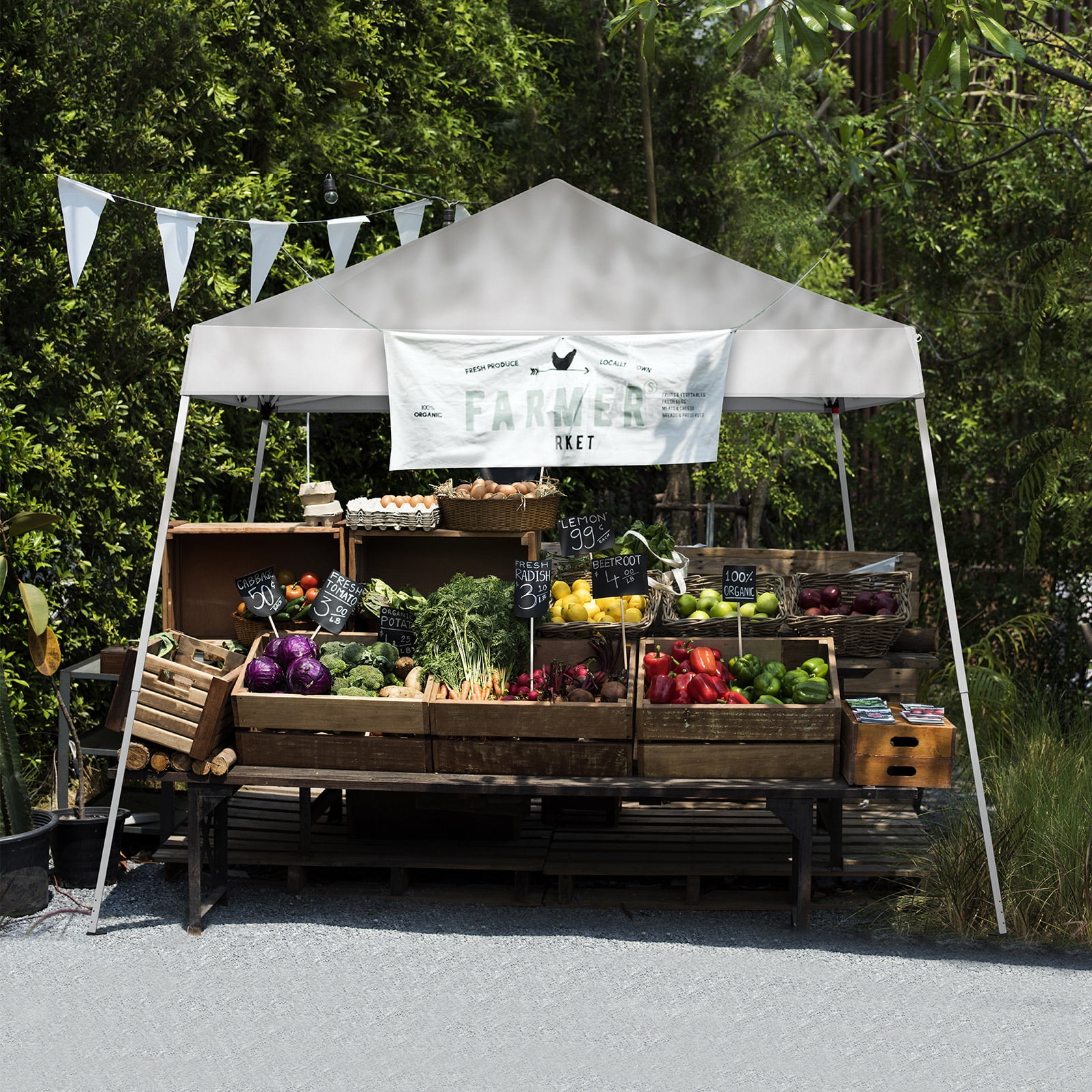 Portable Shelter: Steel pop up 10 Feet by 10 feet Instant canopy tent with leg skirts for an added touch of elegance. Serves as a portable canopy cover for outdoor celebrations, weddings, and corporate events weddings Includes: 10×10 powder coated steel frame, 210 denier canopy fabric top, carry bag, and rope/spike kit Recreational canopy to be used as a temporary shelter and not intended to be used as a permanent shelter. Do not leave the canopy unattended or erected overnight Lightweight and Portable: Weighing only 22 pounds This lightweight canopy is one of our lightest and most portable models One Minute Setup: Takes only a minute to set up. Folding steel frame with no loose parts. No tools required. Setup and breakdown is quick and easy with the push button toggle Leg adjustments and the oversize easy grab pull Pins at the top corners Angle Leg Design: Stable base with an extra wide 10’x10′ Footprint and 8′ x 8′ At top. Weight: 22 lbs Take Anywhere: This canopy is ready for anything and anywhere. Take this to the beach one day and a family BBQ The next. This lightweight canopy is easy to transport from place to place Material: White Powder Coated Steel Frame and WaterProof 210D Oxford Fabric Cover