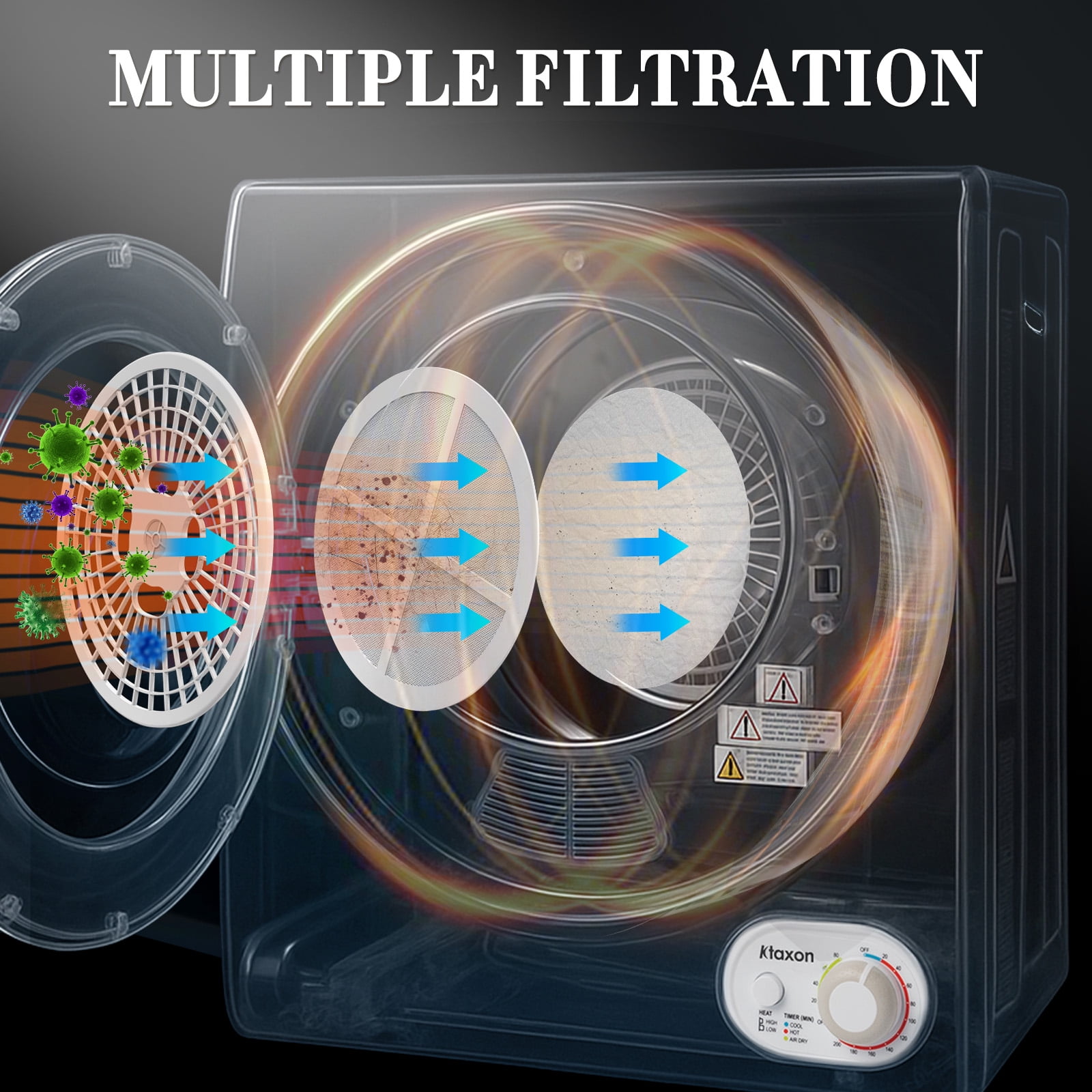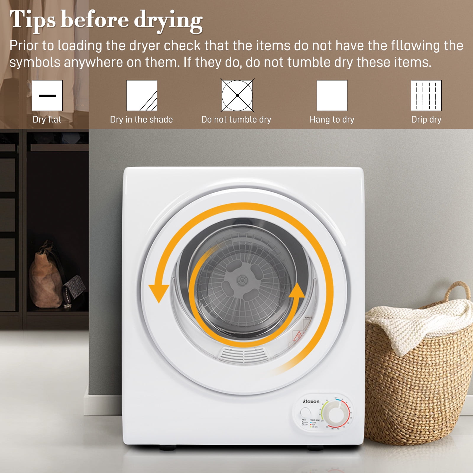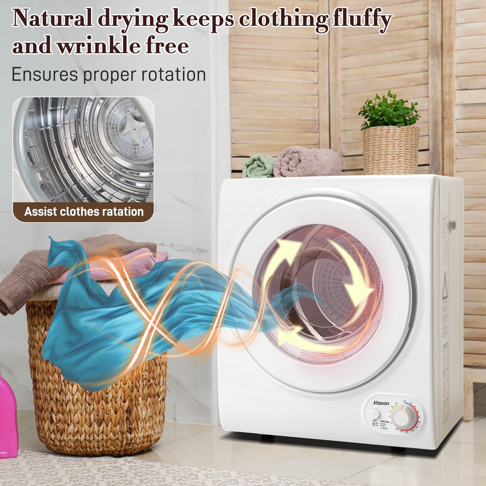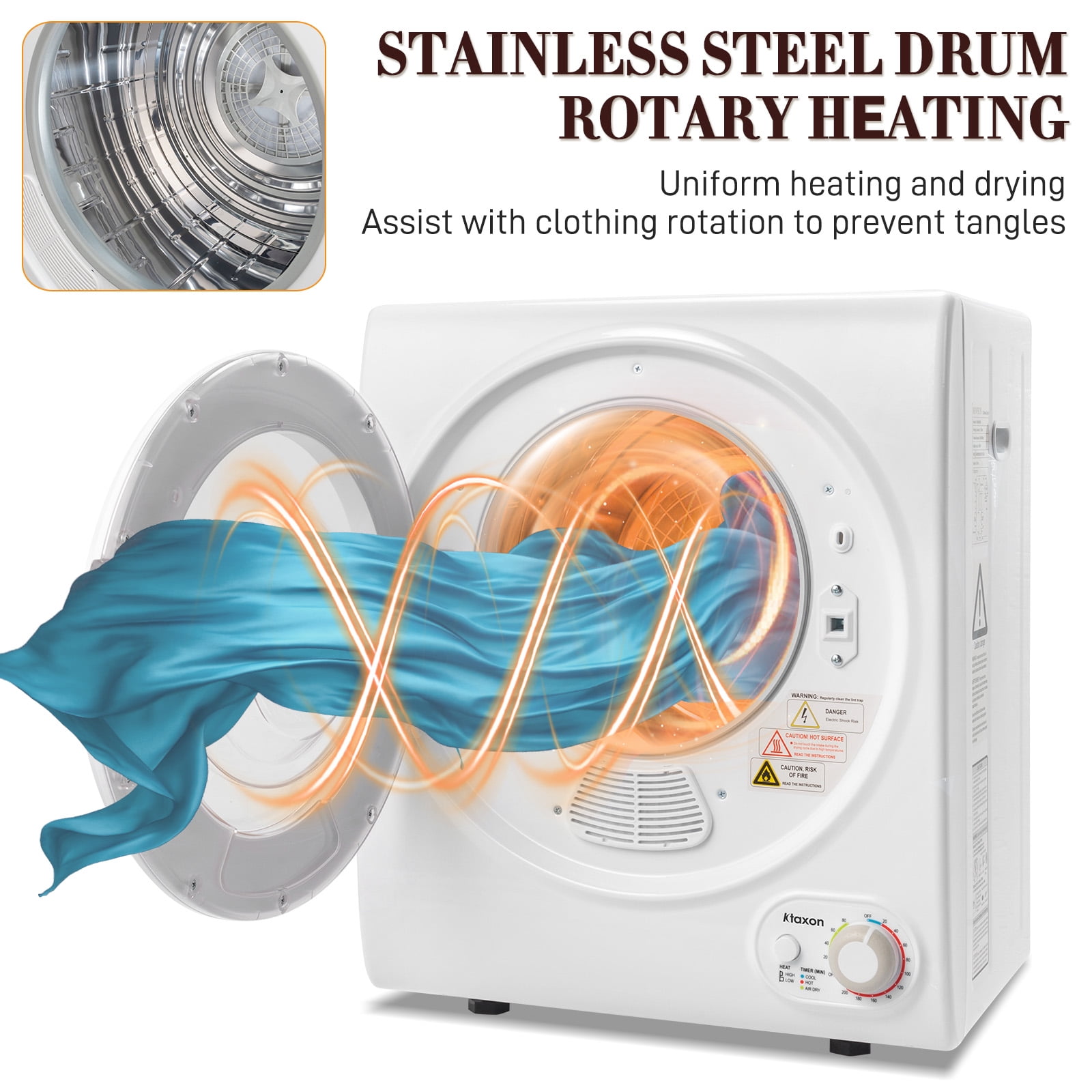 Ktaxon 1.6 cu ft Portable Compact Electric Dryer, High End Laundry Front Load Tumble Clothes Dryer Machine with Stainless Steel Tub & Simple Control Knob for Apartment