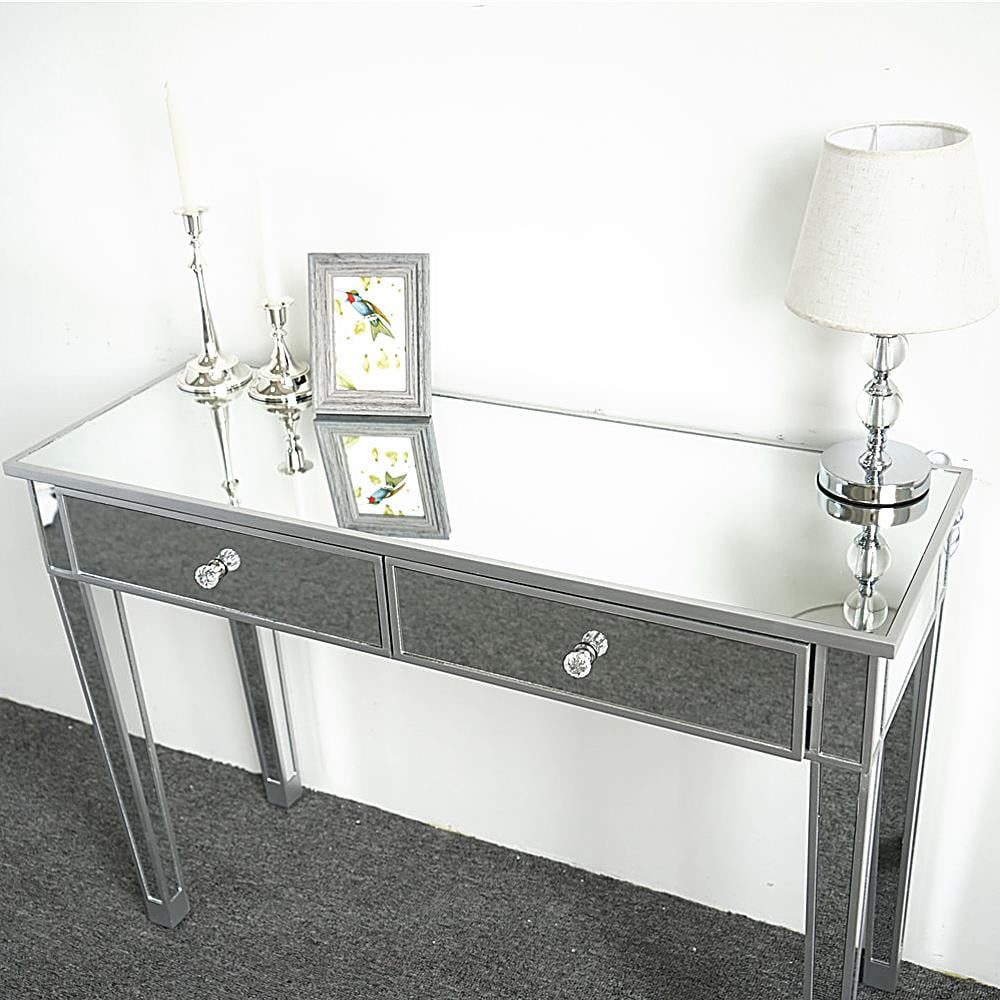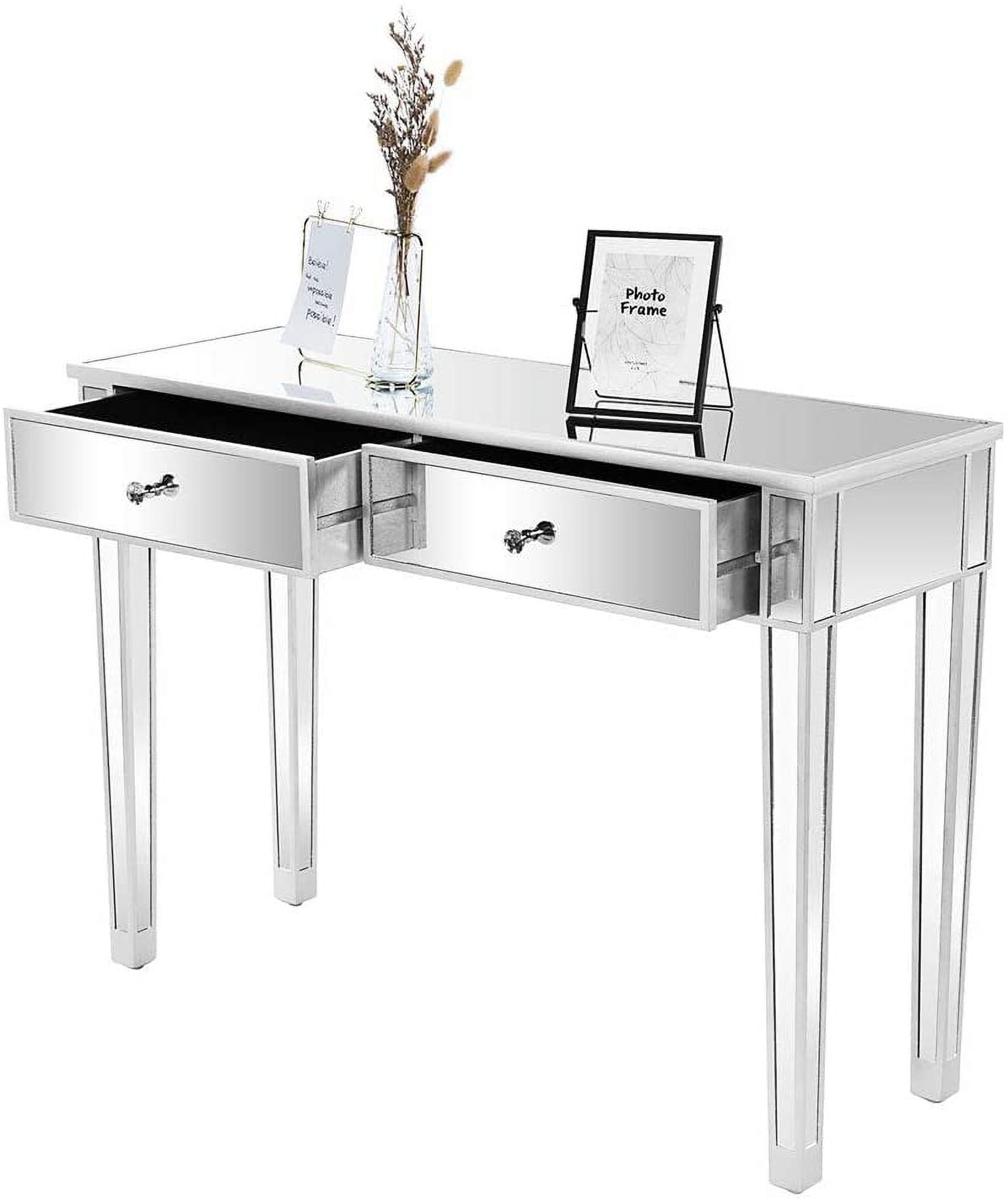 Ktaxon 2-Drawer Mirrored Vanity Makeup Table – Mirrored Console Desk Vanity Furniture Nightstand Glass Bedside Table, Silver