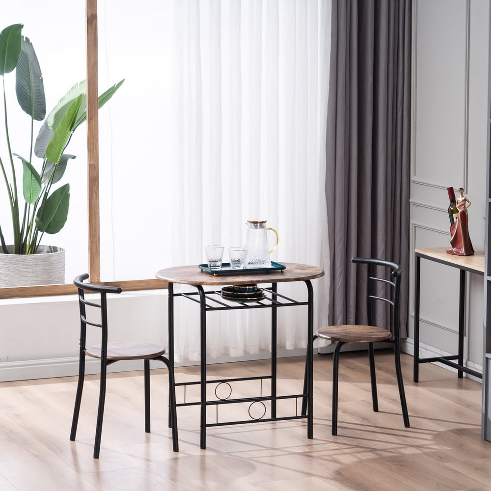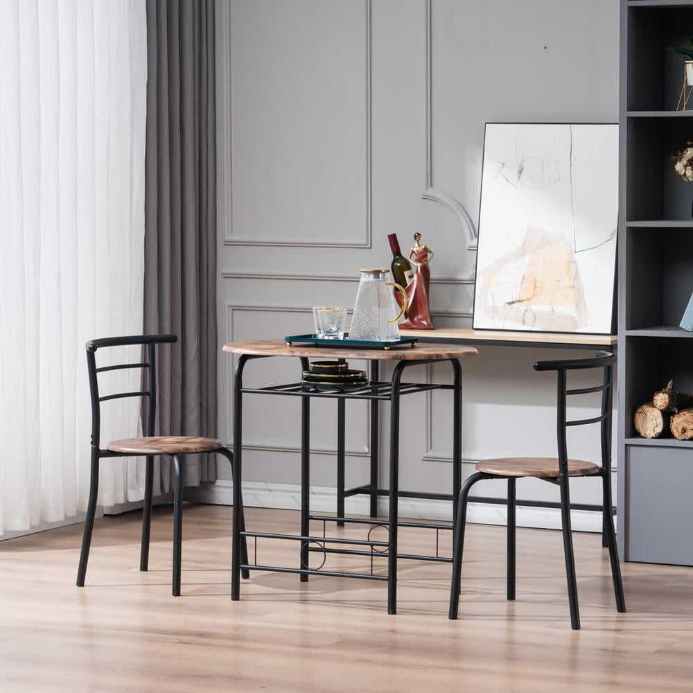 Ktaxon 3 Piece Dining Set Compact 2 Chairs and Table Set with Metal Frame Fire Wood and Black