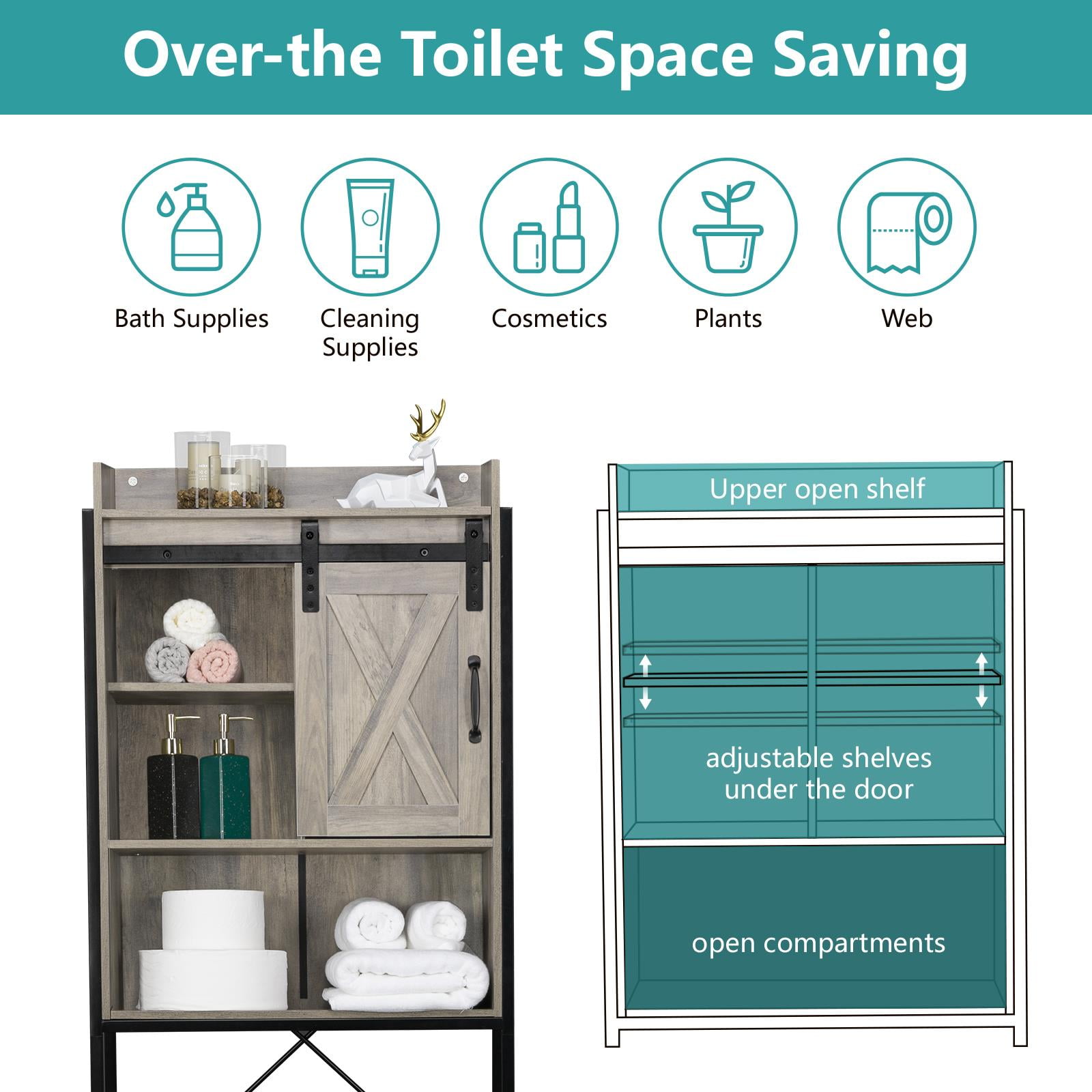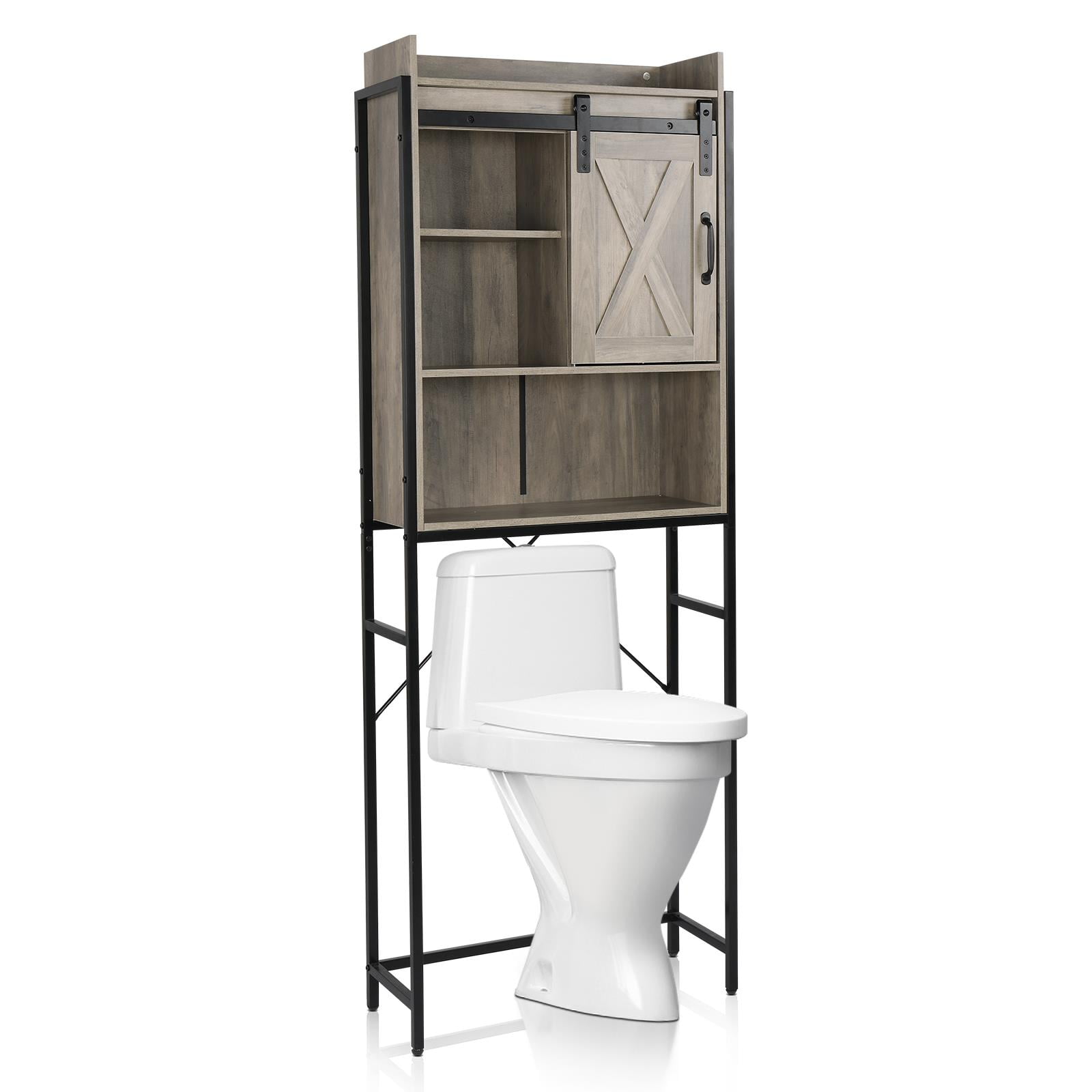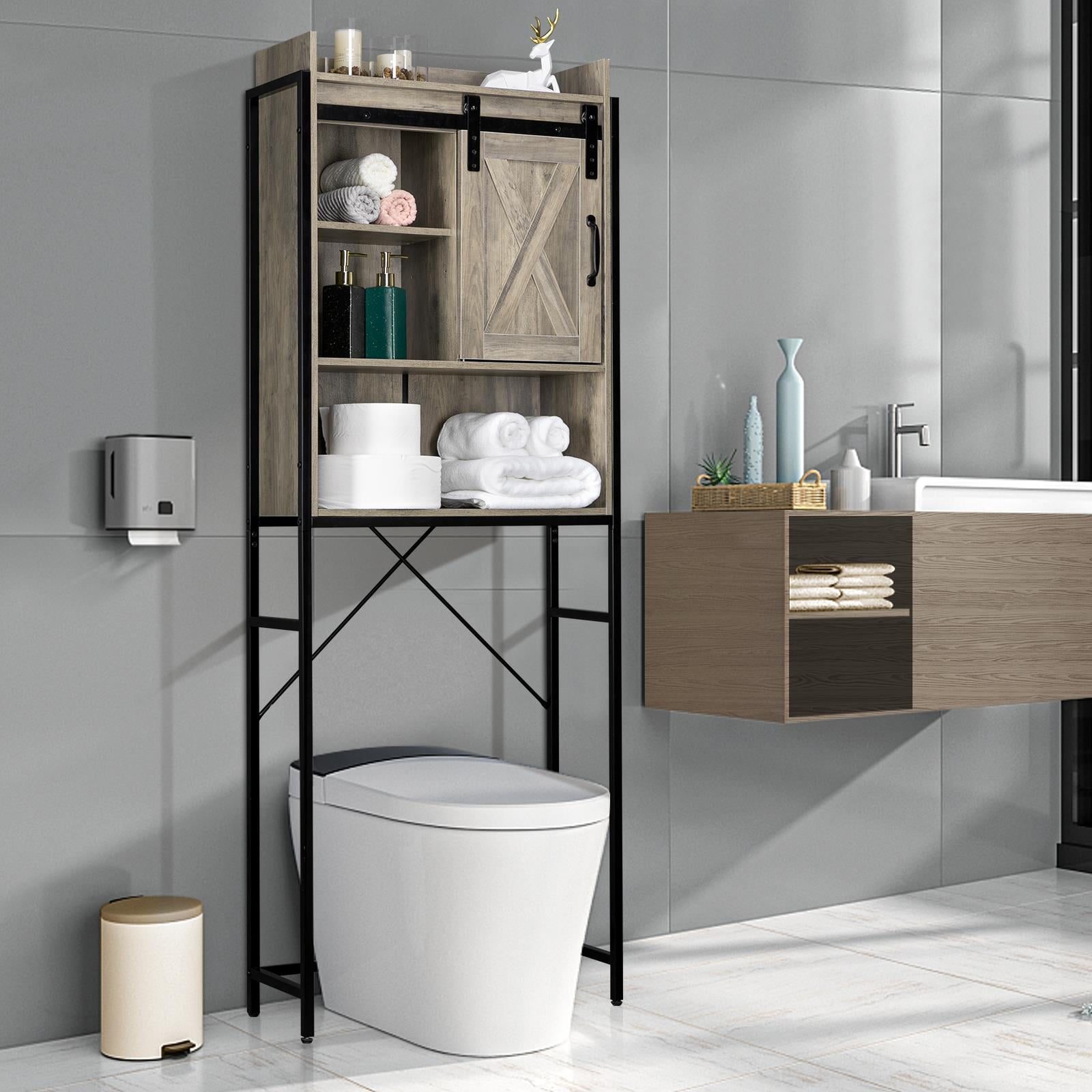 Ktaxon 3-Shelf Over The Toilet Bathroom Storage Cabinet and Shelf with Sliding Barn Door, Retro Gray