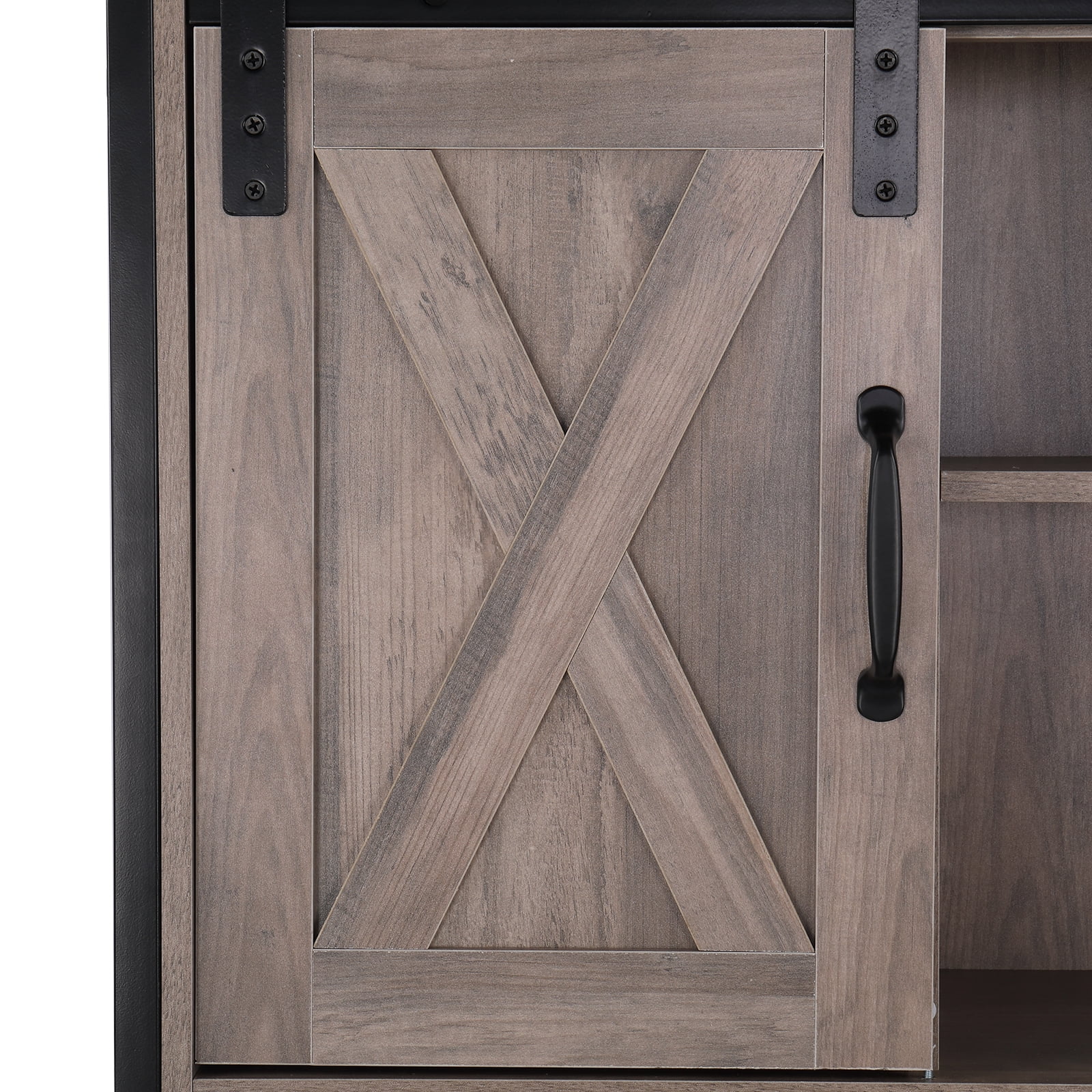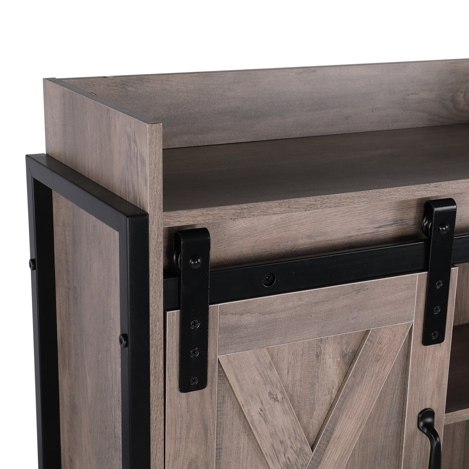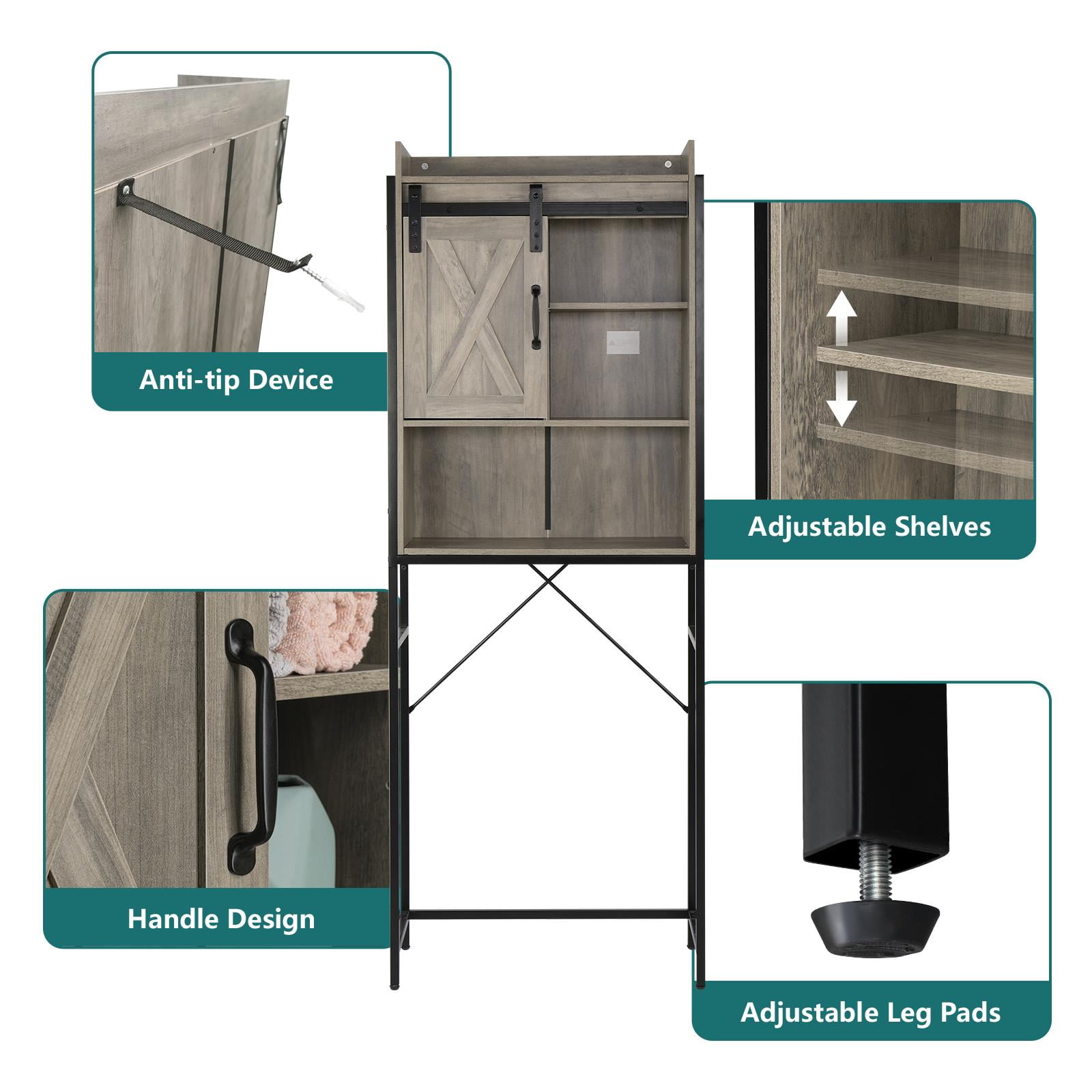 Ktaxon 3-Shelf Over The Toilet Bathroom Storage Cabinet and Shelf with Sliding Barn Door, Retro Gray