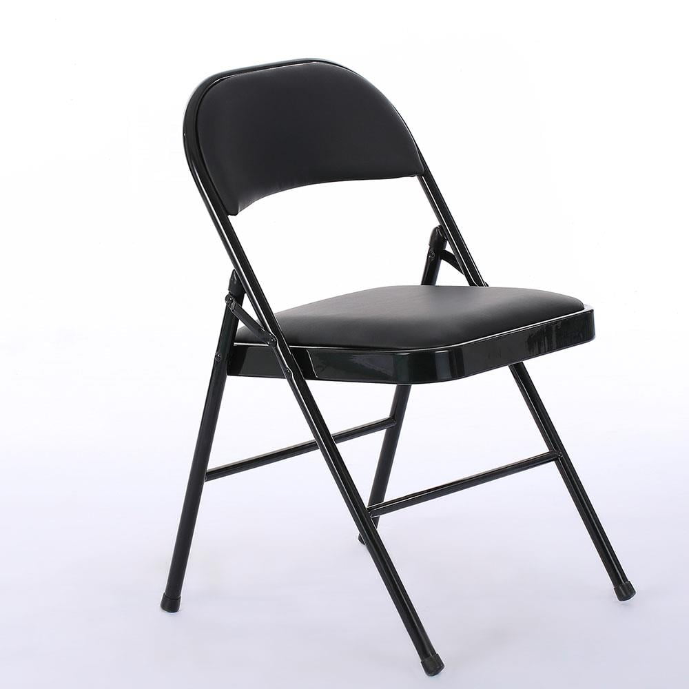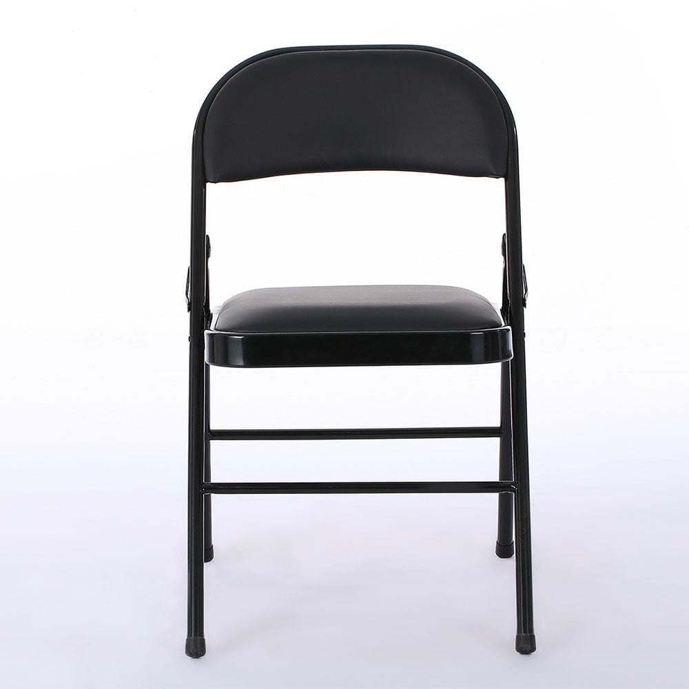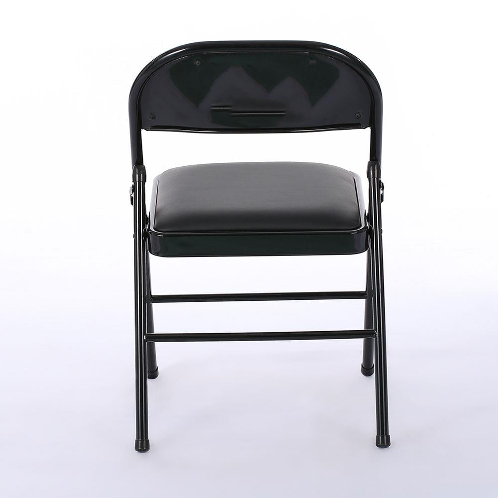 Introductions: This simple style chair combined steel and PVC is suitable for dining room, living room, reception room, exhibition and other places. Sponge filled cushions and backrest give you a more comfortable experience. Sturdy steel frame, two cross – supporting structure can improve the stability of the chair, which makes the chair durable. Steel folding chairs are essential for entertaining guests at large games, parties or events. And they are the best choice when you need additional seats. After use, folding chairs are folded and compact for easy folding and storage. The chairs have smooth surfaces, which is easy to clean. The plastic tube sleeves on chair legs can effectively protect your floor and prevent scratching. Specifications: 1. Color: Black 2. Dimensions: (15.75 x 17.72 x 30.71)”/ (40 x 45 x 78)cm (L x W x H) 3. Seat Dimensions: (15.75 x 15.75)” / (40 x 40)cm (L x W) 4. Backrest Dimensions: (17.32 x 7.09)” / (44 x 18)cm (L x W) 5. Material: Iron Tube & PVC 6. Weight Capacity: 300lbs 7. Each Chair Weight: 8.38lbs / 3.8kg Package Includes: 4 x Foldable Chairs