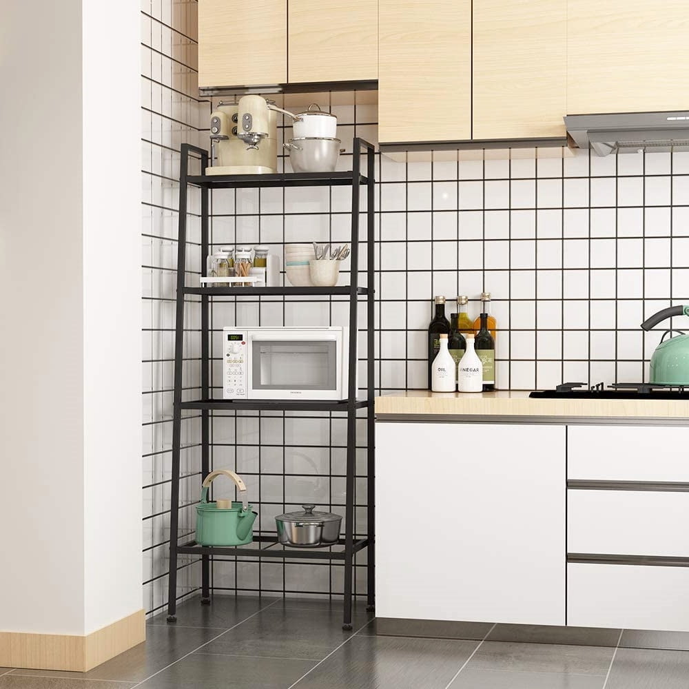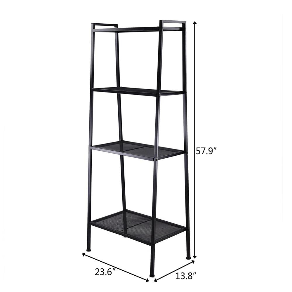 Introductions: If you are looking for a practical bookshelf, you can’t miss this Widen 4 Tiers Bookshelf. This bookshelf is made of material, which is stable, sturdy and durable. Its design of 4 tiers can hold a lot of books, and its strong bearing capacity can bear 44-88 lbs. You not only can put book in this bookshelf, but also it can place many other items like potting, decoration, etc. In addition, with its exquisite appearance and fine workmanship, this bookshelf also can be a decoration in your room. Don’t hesitate, it’s worth buying! Features: 1. Made of iron 2. Stable, sturdy and durable 3. Practical, design of 4 tiers can hold a lot of items 4. 44-88 lbs strong bearing capacity 5. Exquisite appearance and fine workmanship 6. Easy to install Specifications: 1. Material: Iron 2. Color: Black 3. Dimensions: (23.62 x 13.78 x 57.87)” / (60 x 35 x 147)cm (L x W x H) 4. Weight: 8.82 lbs / 4.5 kg 5. Weight Capacity: 44-88 lbs Package Includes: 2 x L Tubes 2 x Front Tubes 2 x Rear Tubes 4 x Meshes 16 x Screws 4 x Foot Pads 1 x Manual Built for extended use: Sturdy metal for the frame and durable chipboard for shelving; reinforced by crossbar on the Back; this ladder bookshelf is quite solid and has long service life 4-Tier open shelves: rustic ladder shelf provides ample space while making full use of the limited space, Perfect for storing any items you want to collect and display Stable for safe use: 4 protective caps on the bottom to ensure wooden ladder shelf stands stably while protecting your floor from scratches; Comes with Anti-toppling fittings to anchor it to the Wall for safe use No hassle assembly: shelf ladder bookcase comes with detailed and illustrated instructions and numbered parts; All fittings and tools required for assembly are included for a worry-free assembly Vintage industrial style: matte Black frame combined with Vintage shelving, This ladder shelf bathroom storage is sophisticated and stylish, matches well with your other furniture; sized 23.62”L x 13. 78”W x 57.87”H ( 60 x 35 x 147 cm)